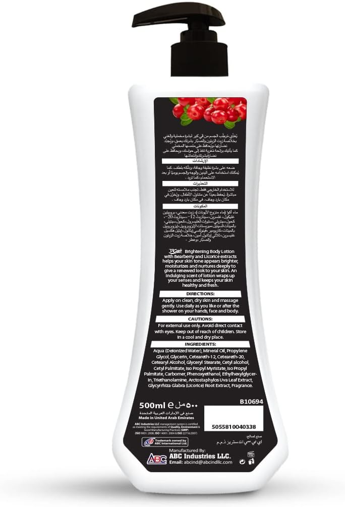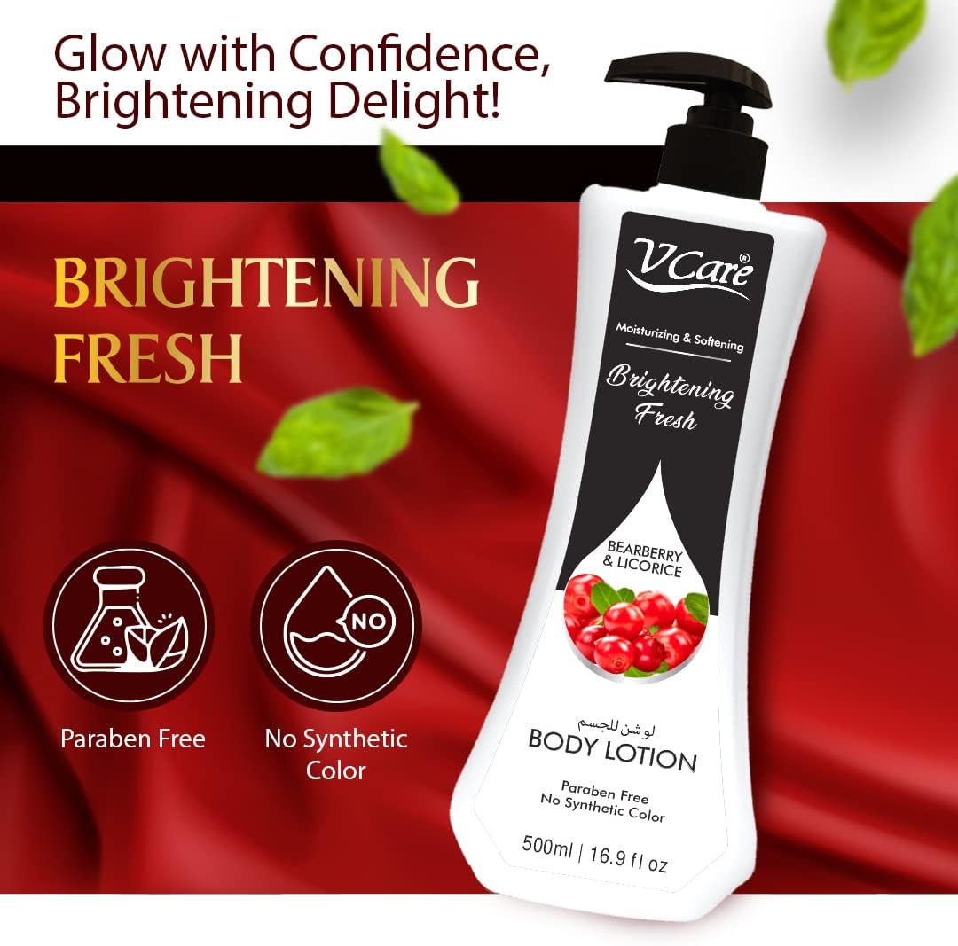 V Care Vcare Brightening Fresh Body Lotion - 500ml Bearberry & Licorice Extracts | Moisturizing Body lotion for Dry and Rough Skin| Pump Bottle