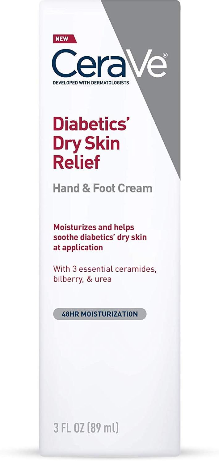 CeraVe Hand Cream & Foot Cream for Diabetics’ Dry Skin | Diabetes Care Foot & Hand Cream for Dry Hands & Feet | Fragrance Free & Paraben Free | 3 Ounce
