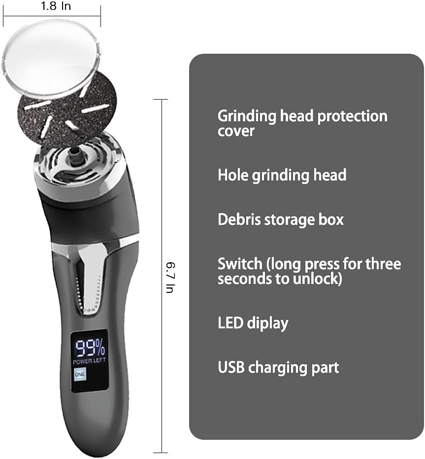 【USB & Portable Pedicure Tools Set】This Portable Electric Foot Dead Skin Remover Pedicure Kit with 3 Different Quartz Sand Grinding Heads for different callus condition. Standard USB interface,Portable, Lightweight, eco-friendly, so you can ditch the AA batteries, made it perfect for on-to-go or travel.