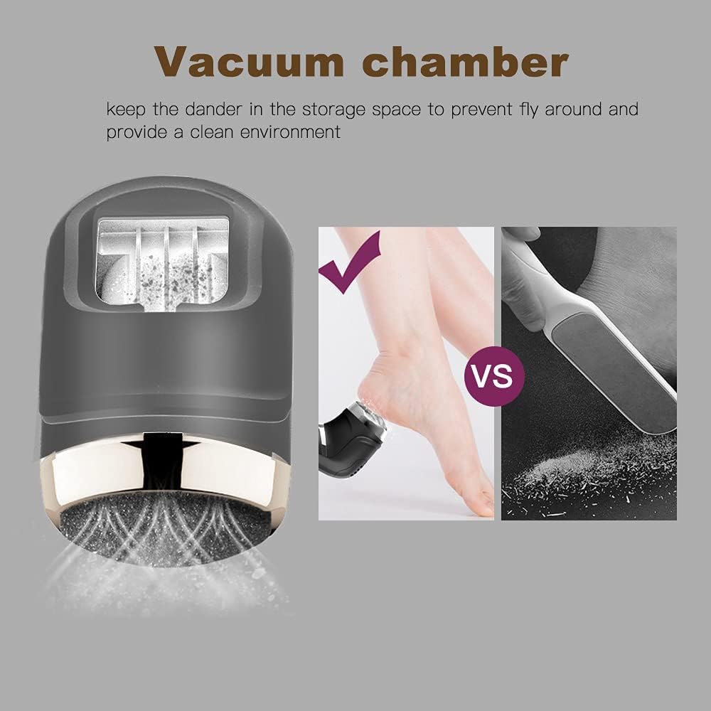 【Built-in fan Vacuum chamber】 This Electric Foot File Care novative vacuum design which can absorb over 98% of dead skin dust. When exfoliating, keep the dander in the storage space to prevent fly around and provide a clean environment.