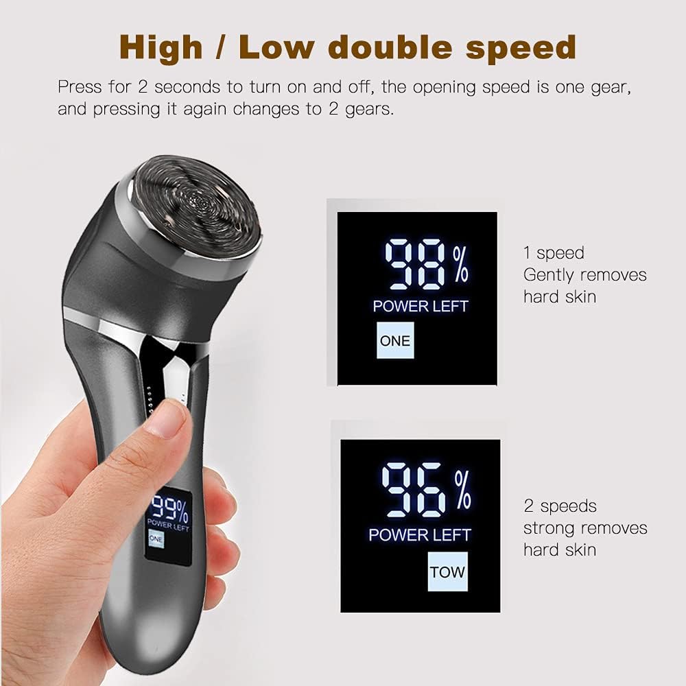 【 2 Levels of Speed Adjustable &IPX7 Waterproof】This Electric Foot Callus Remover Kit have 2 Speeds, speed of high(2200RPM/mins) for Hard Cracked dead skin removing and low speed (1700RPM/mins) for softly remove the dead skin. IPX7 electronic foot scrubbe is Waterproof, and the Head can be Washed Separately After Dermabrasion.