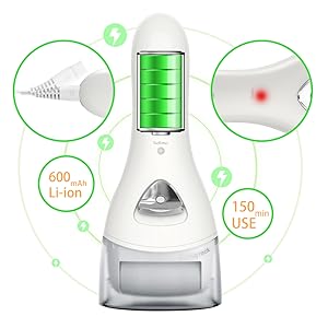 .FAST & RECHARGEABLE PRO FOOT CARE CALLUS REMOVER SET ━ Efficient foot pedicure tool, simply recharge the battery of cordless electric pedi perfect foot file with the provided adapter charging for 8 hours. 600mAh Li-ion battery can be used up to 45 minutes.
