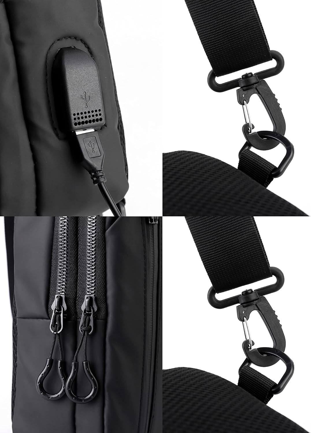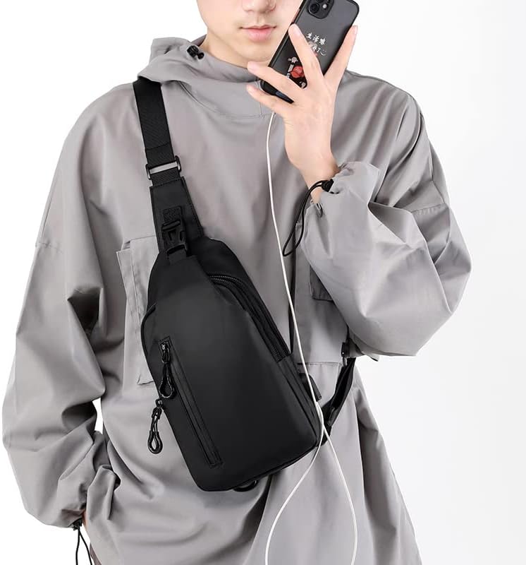 LTLCLZ Sling Crossbody Bag Small Shoulder Backpack for Men,External USB hole design,Waterproof Slim Chest Bags Casual Daypack for Travel Cycling