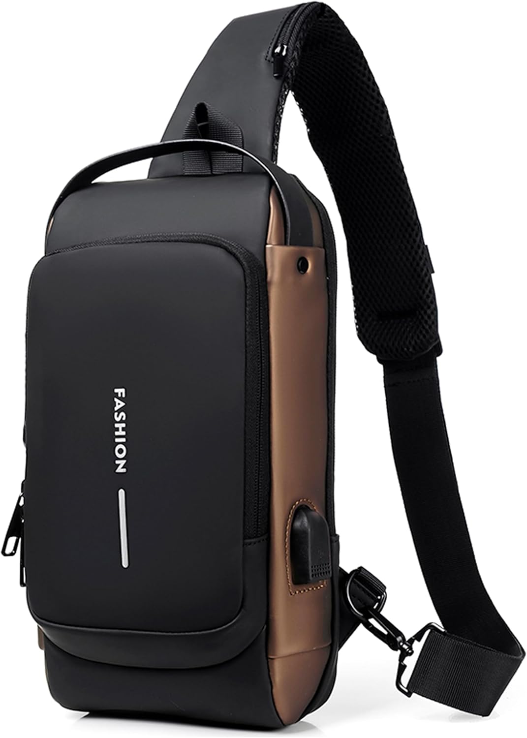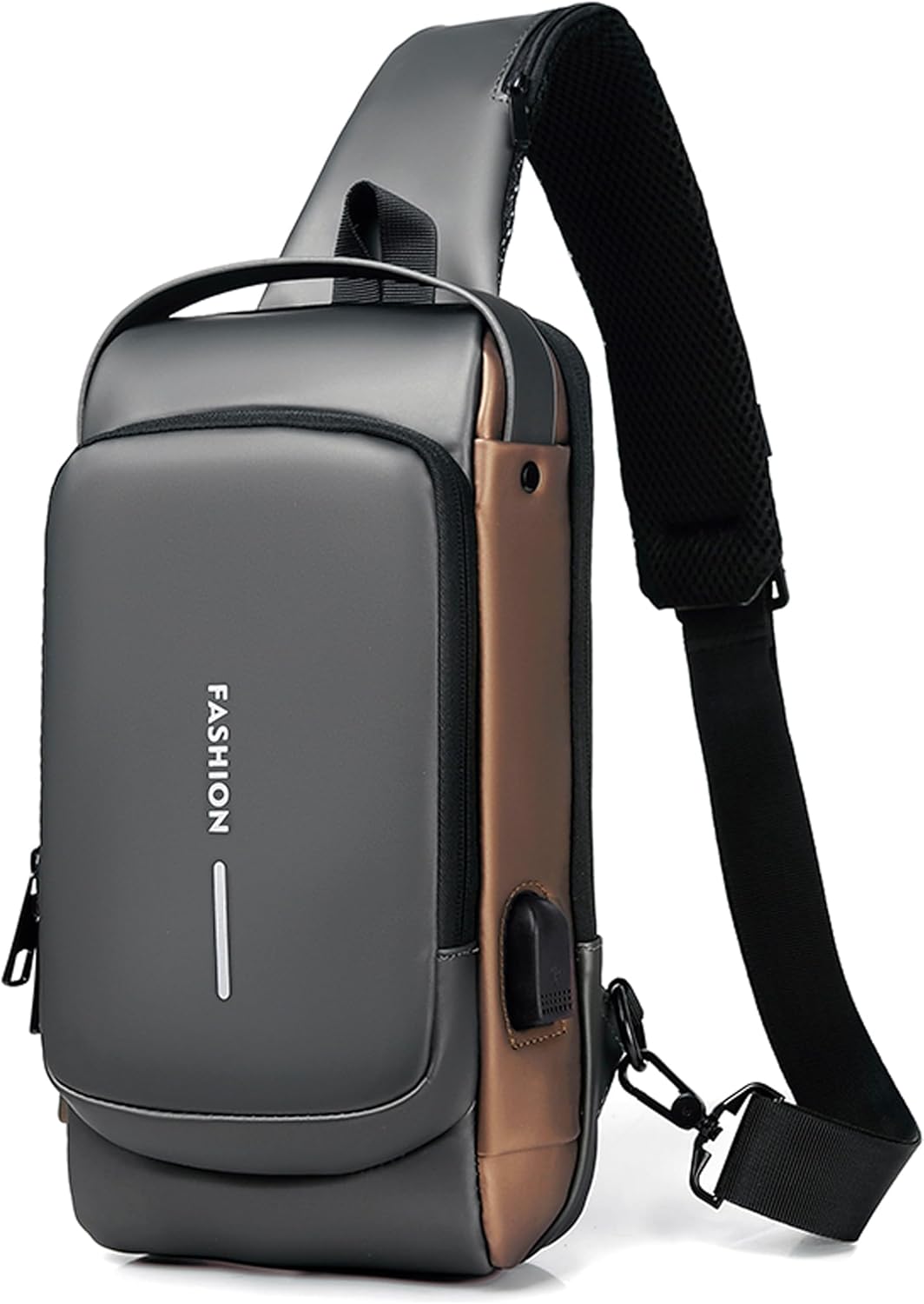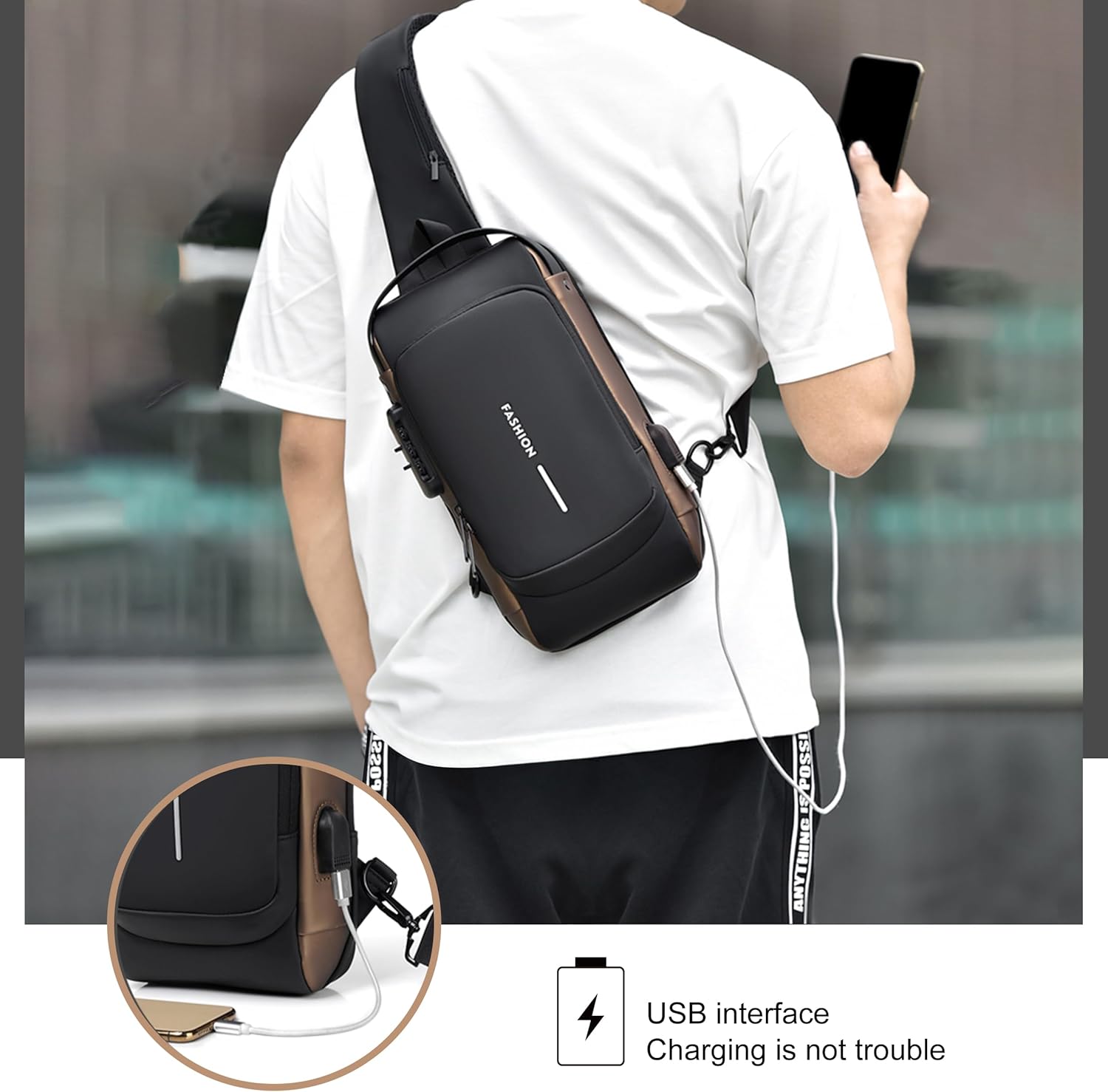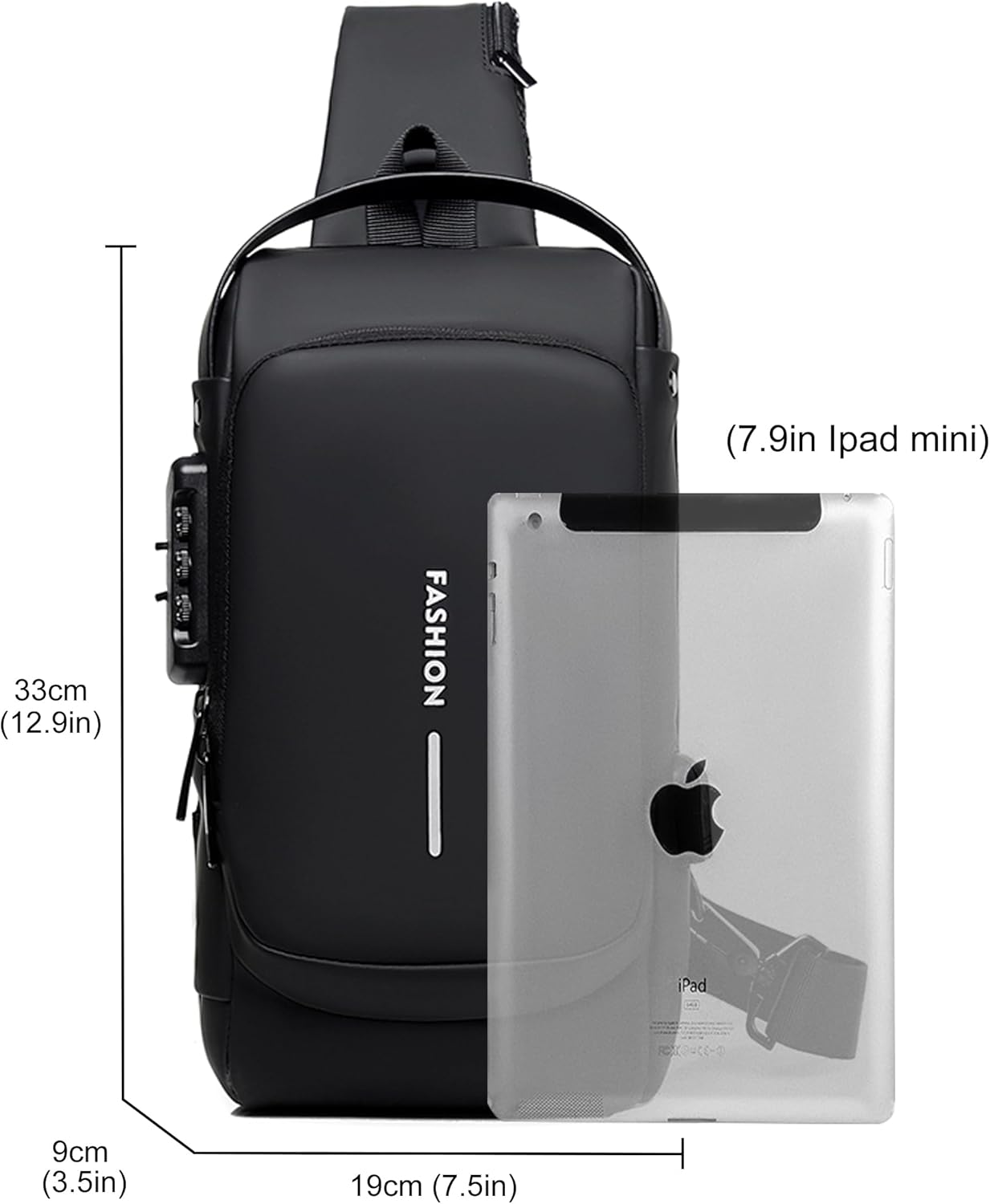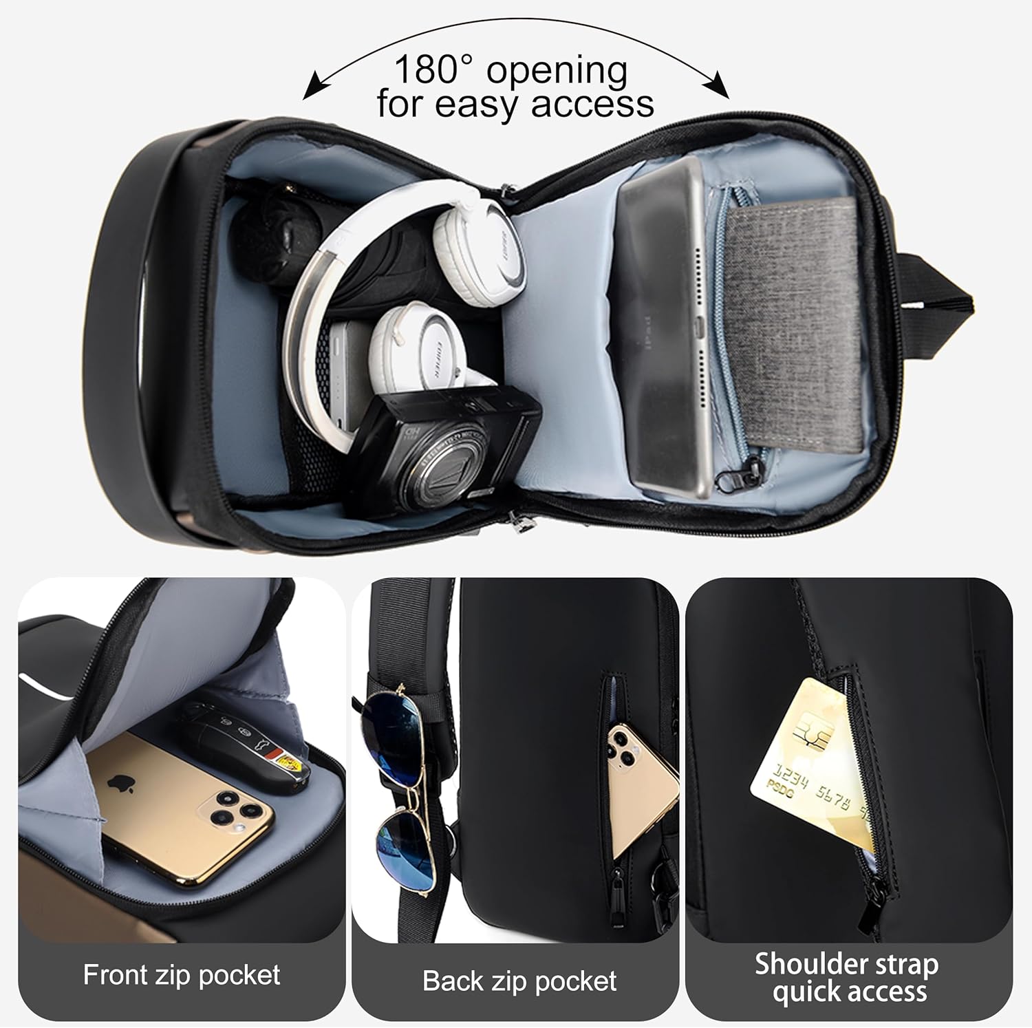 - Portable USB Port: The sling bag has a built-in USB charging cable, which can be connected to a power bank, and an external USB port can be connected to a mobile phone. You can charge your phone without opening the backpack, and the humanized design facilitates your travel.