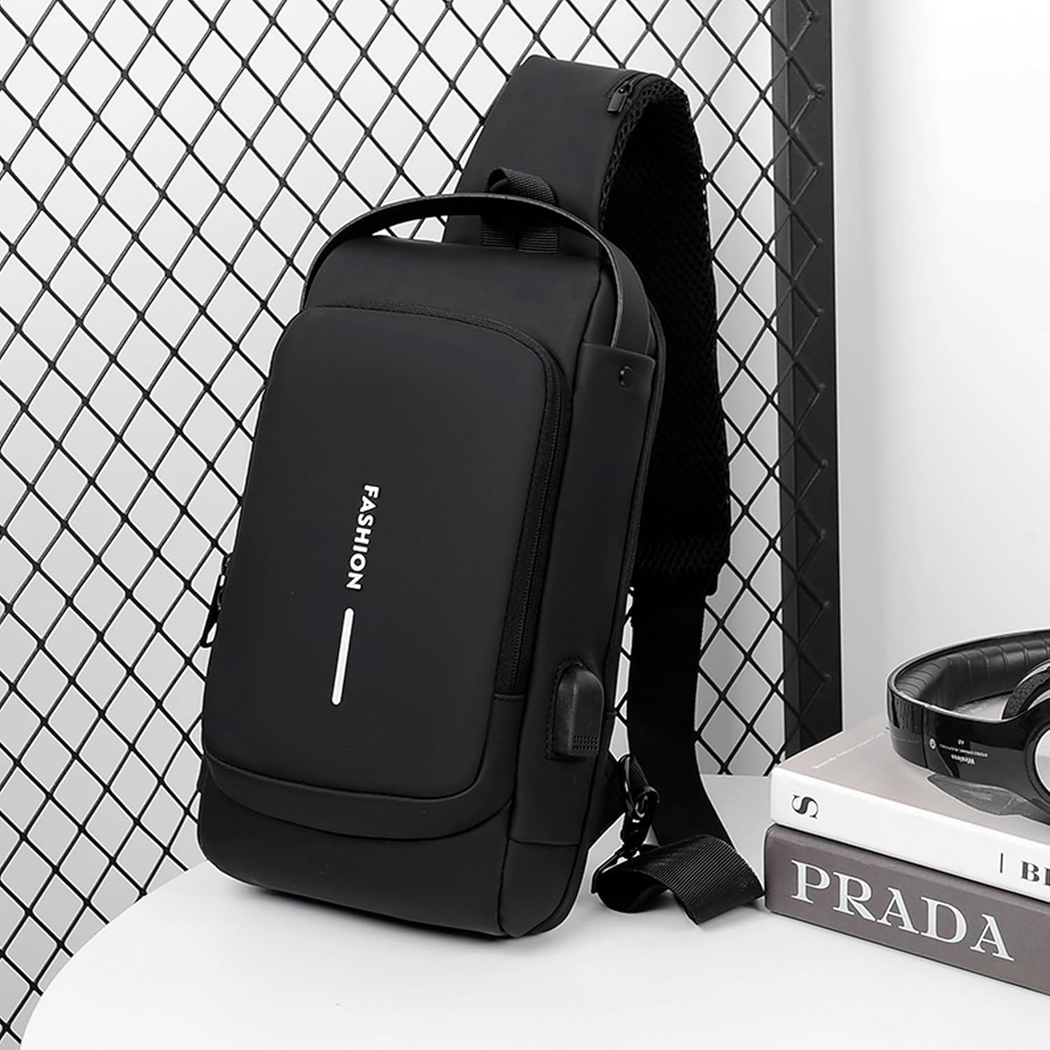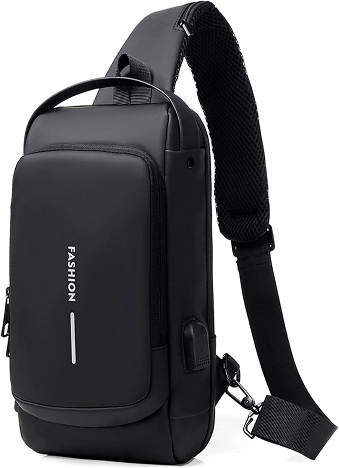 Mountain Land Crossbody Sling Bag Chest Backpack for Men Waterproof Lightweight Casual Shoulder Backpack Bag with USB Charging Port and Anti-theft Lock for for Daily Work Travel Black