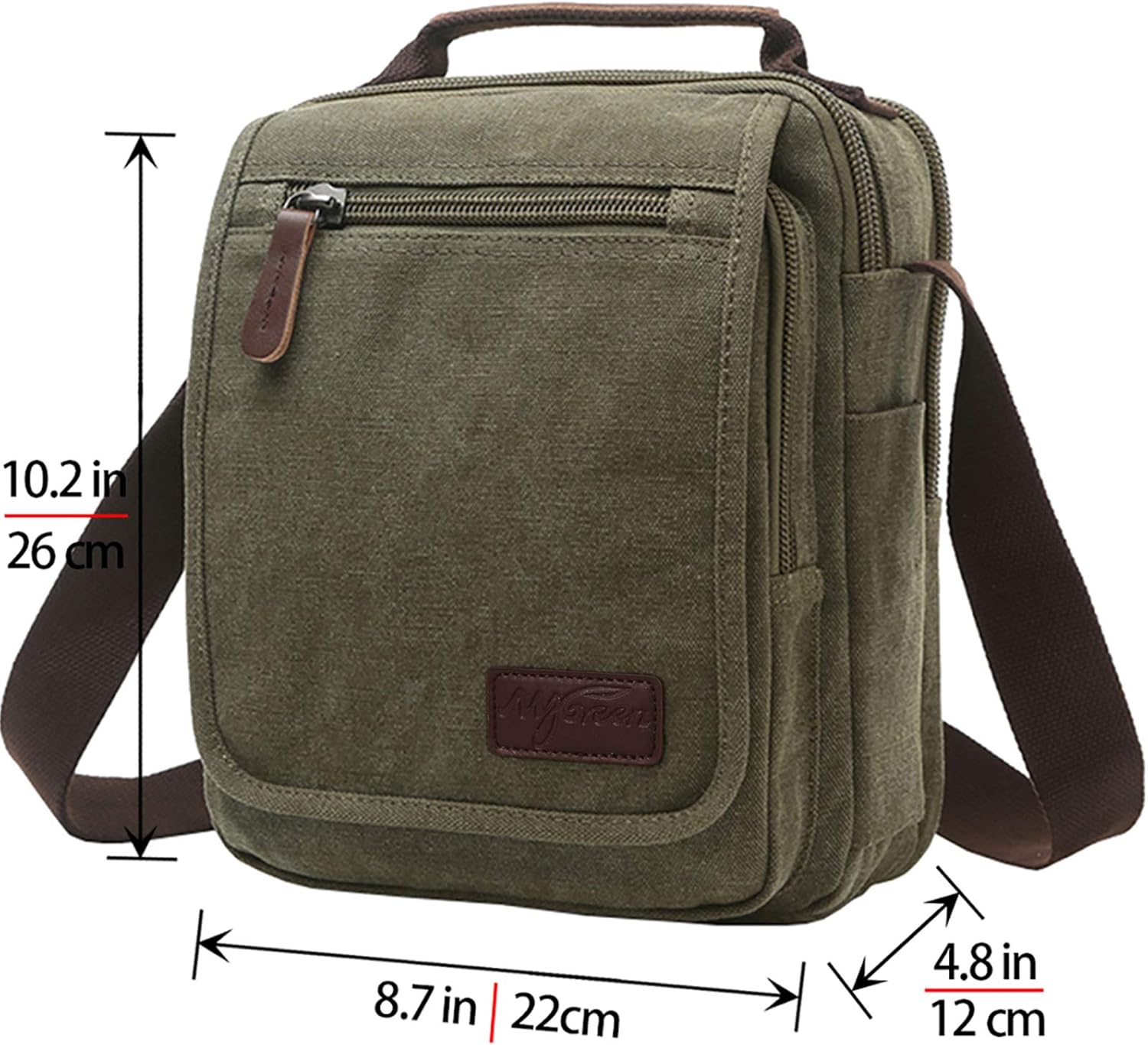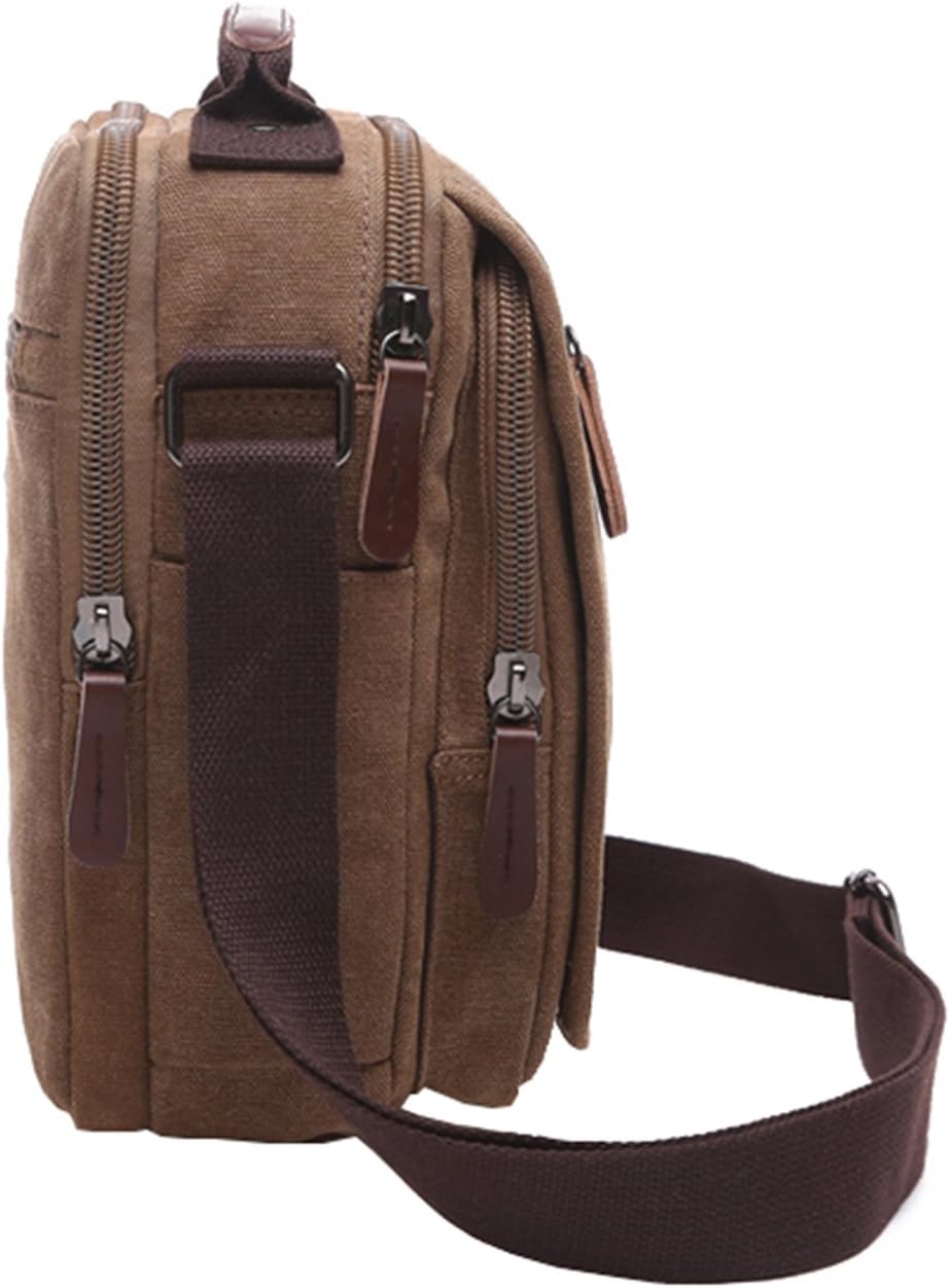 Product Features: - Made of high density cotton canvas and PU leather zips, classic and fashion. It's a very durable shoulder bag. - Scientific and reasonable pocket lining design make your items lay in the bag systematically. There is a key clip in the flap to keep your keys safely. - It has enough pockets and capacity to organize your basic survival gear, as well as to conveniently carry the stuff you have to access regularly, like iPad, iPhone, external charger, iPod, cords, headphones, sunglasses, credit cards, cash, mints, snacks, water bottle and so on. - Freely adjustable shoulder strap, you can adjust it according to your height and comfort requirements or use the handle. The stitching on this product is nice and very strong. - Perfect messenger bag/shoulder bag/crossbody bag/handbag/ hiking or traveling Bag, suitable for office, school, outdoor, business and other occasions. - It must be the ideal gift for Birthday, Thanksgiving, Christmas, anniversary. What you can put in this Canvas Cross Body Shoulder Bag? - You can put A6 books, ipad, glasses, wallet, keys, cell phone, umbrella, document and cigaret in the bag. How to maintain the canvas bag? - Wash it with clean water in ordinary temperature. - DO NOT wash it with hot water and alkaline detergent. - Hang to dry and store in ventilated place instead of sun exposure. - Wash Separately to avoid staining. Package includes: - 1 * Shoulder Bag