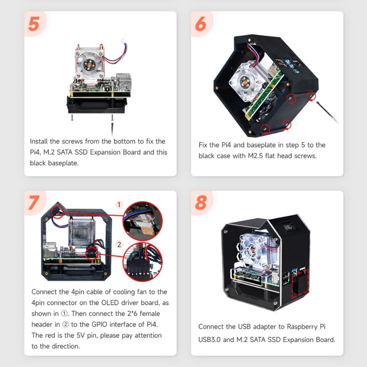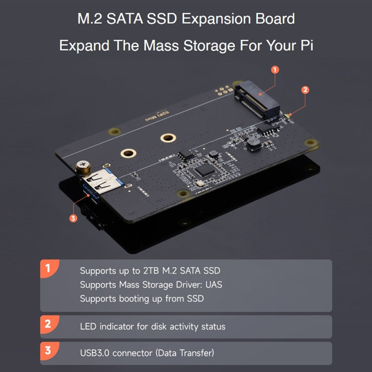 4. M.2 SATA SSD 2280/2260/2240 mass storage adapter board, supports M.2 SATA SSD up to 2TB