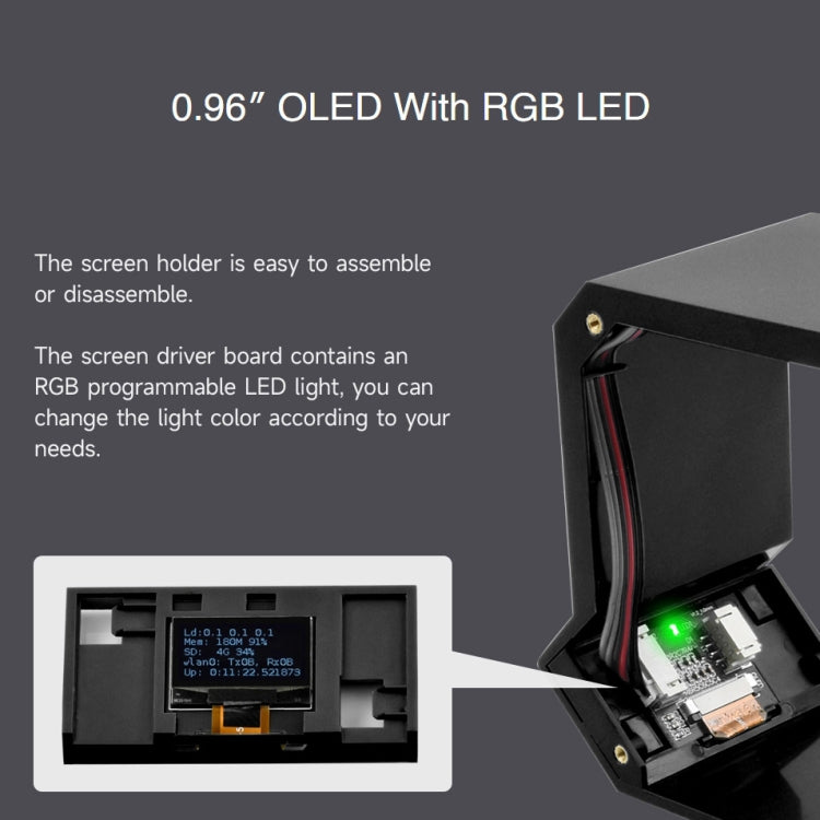 3. A 0.96-inch OLED screen has been installed on the shell, 28 x 64 pixels, and the default I2C address: 0x3C