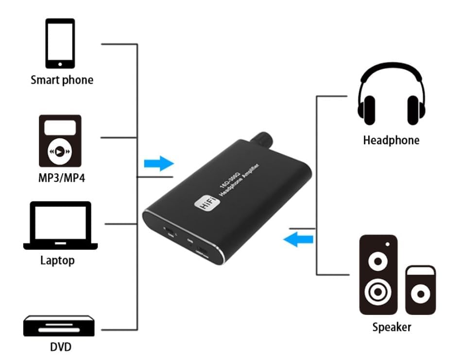 - This amplifier enhances the signal input to the amplifier circuit to achieve the best performance of the headphone. It can not only output louder sound, but also output clearer and more realistic stereo without distortion.