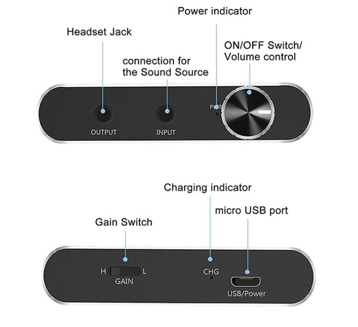 - Built-in 600mAh rechargeable lithium battery, which can keep the headphone amplifier working for more than 8 hours. In addition, there is a volume control knob to adjust the volume.