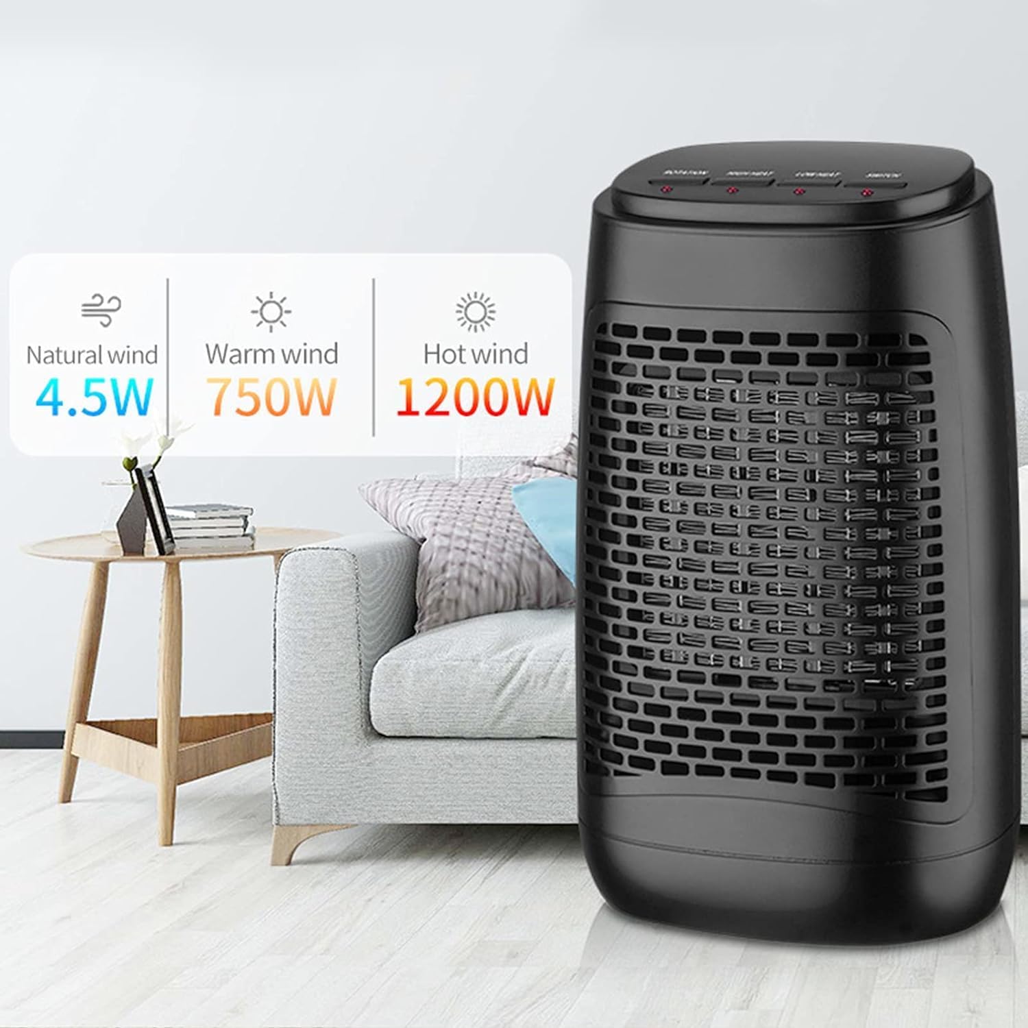 【Cooling and Heating Mode 】This ceramic fan provides 1200W or 750W heating modes and one cooling mode for winter and summer. It's ideal for warming up personal space in small homes and offices or blowing freshening wind for you.