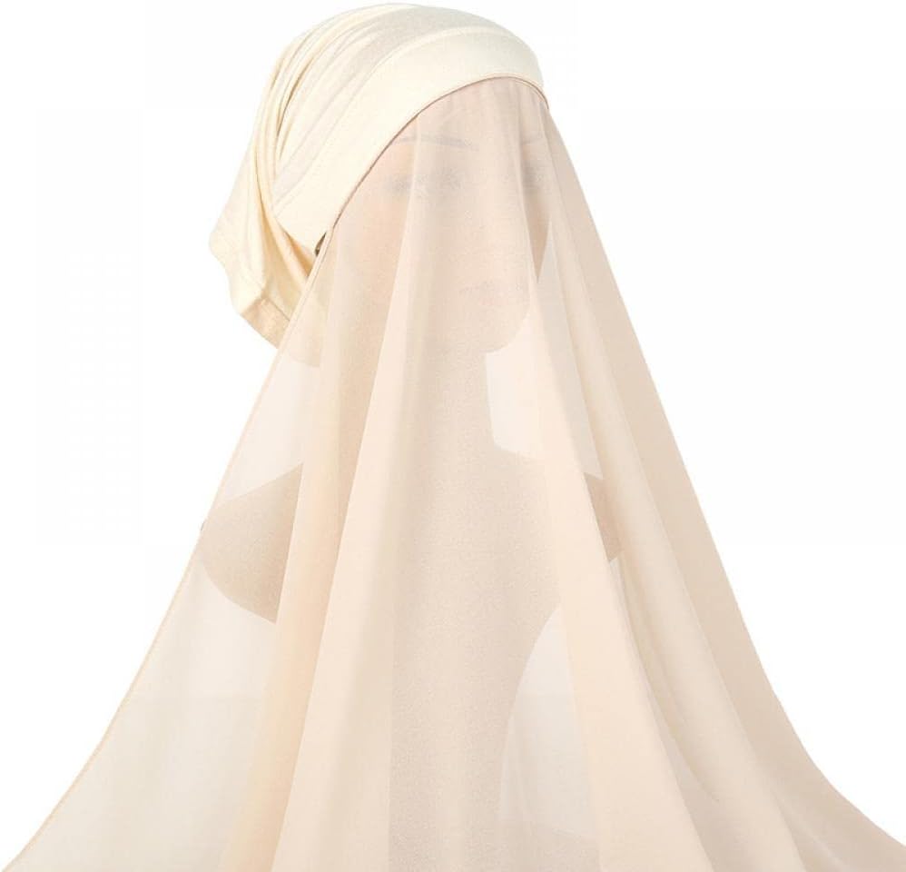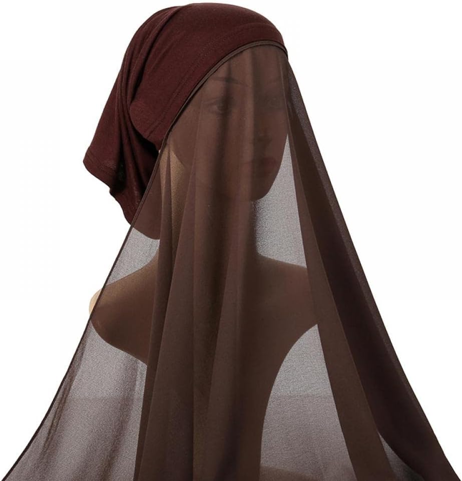 - Design-- Chiffon scarf sewn with a tube cap. It is fashionable and will make you look unique.The scarf can be placed in the front as a veil, or wrapped around the neck from the back.