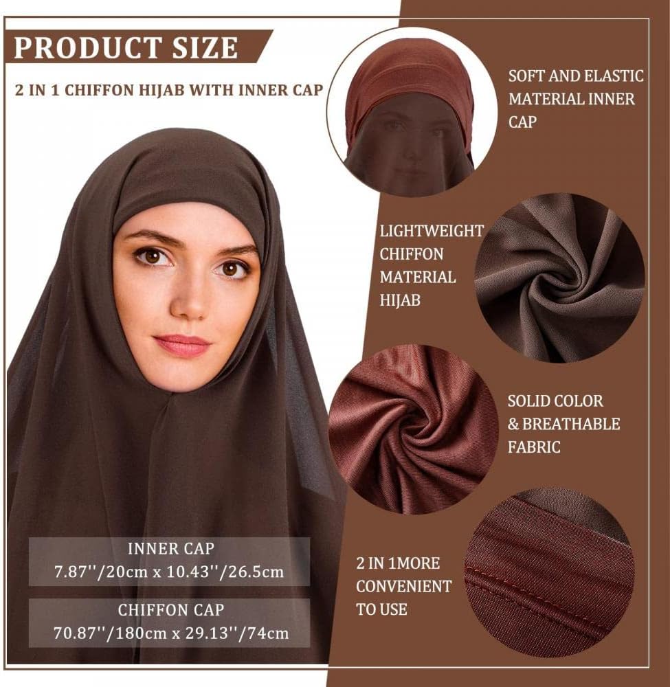 1PcsThe hijab for women are designed with classic colors, and the hat and scarf have been sewn together, more convenient and concise to wear and use.