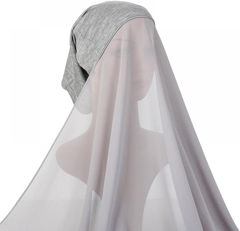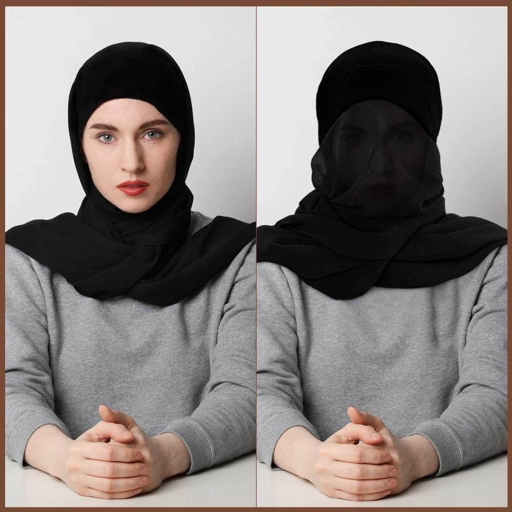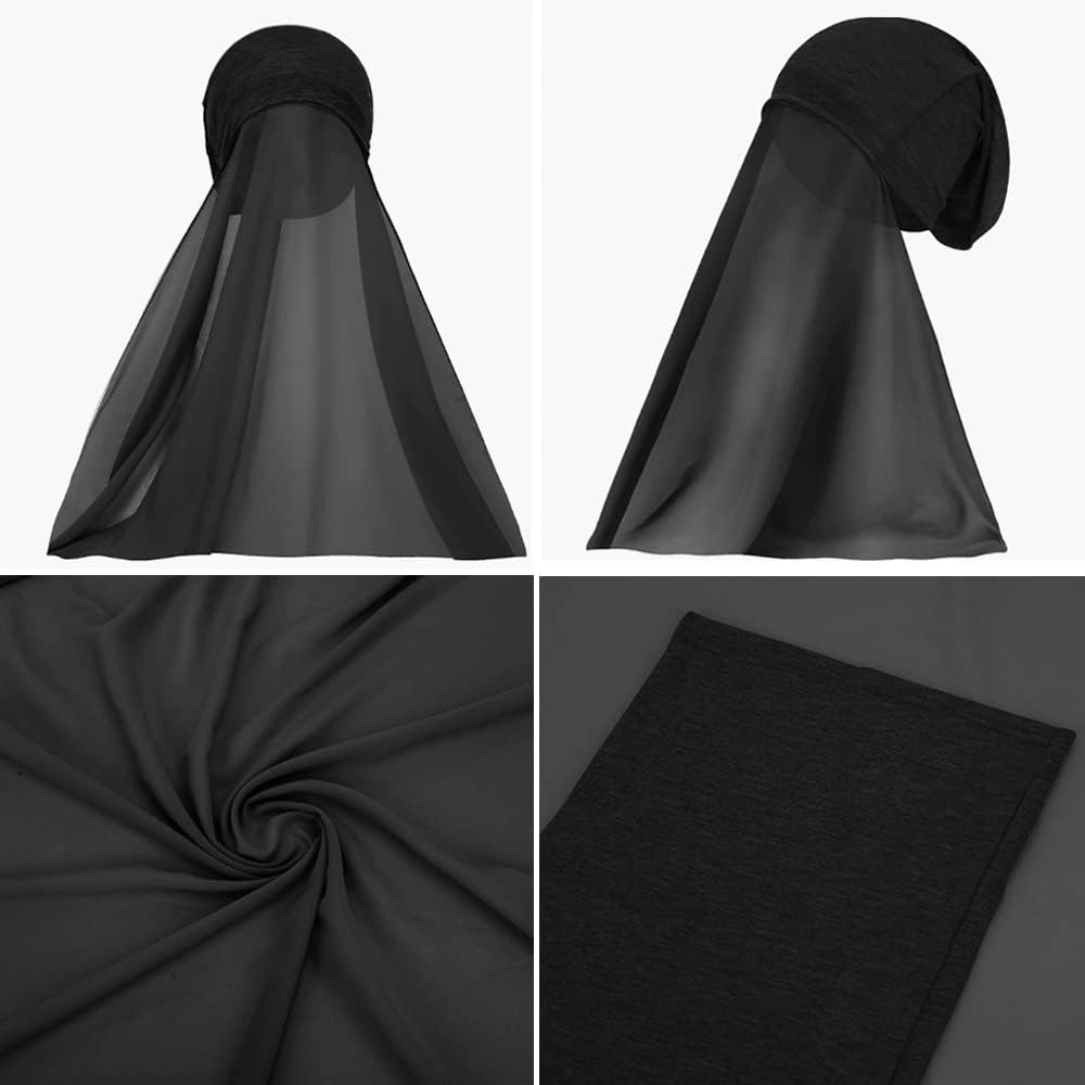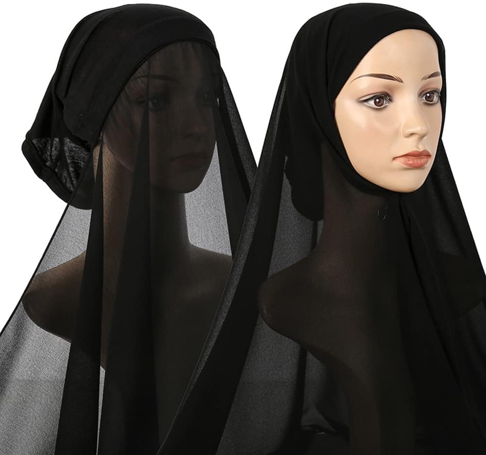 - Instant Chiffon Hijab with Veil,Design: Chiffon scarf sewn with a tube cap. It is fashionable and will make you look unique.The scarf can be placed in the front as a veil, or wrapped around the neck from the back.
