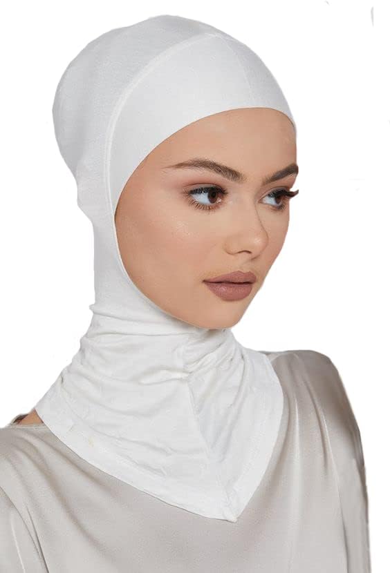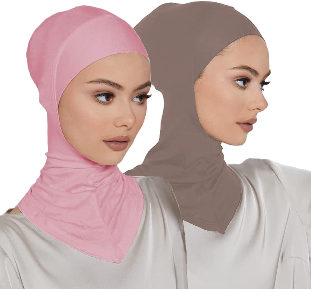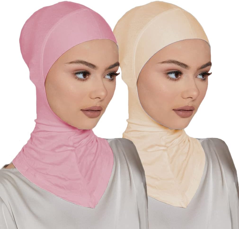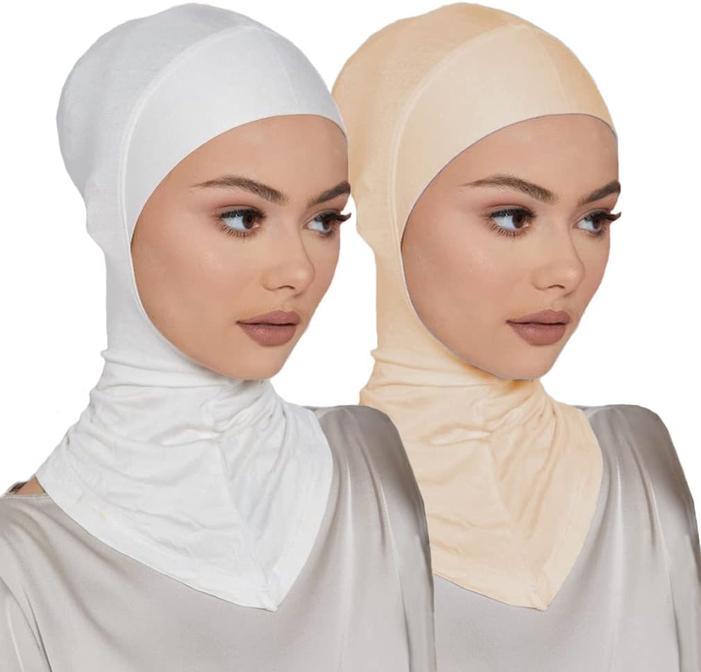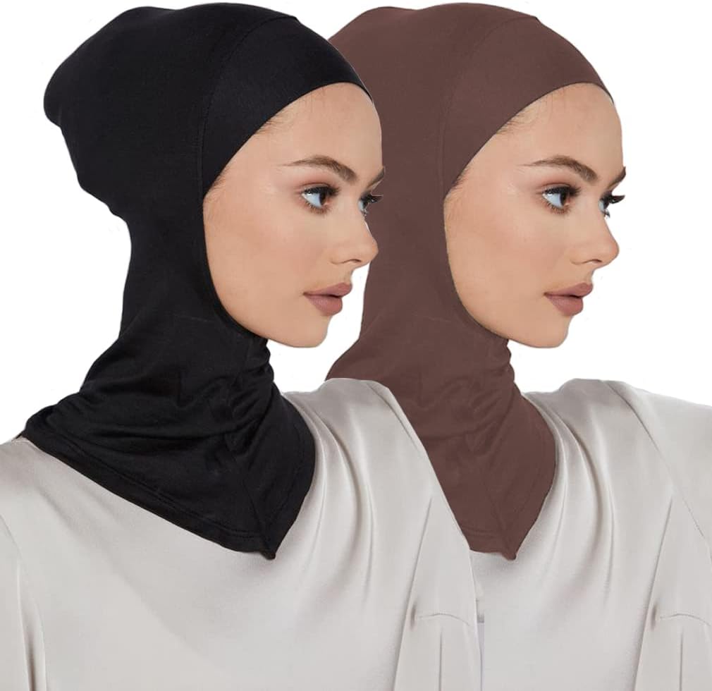 LMVERNA 2 Pieces Modal Hijab Cap Adjustable Muslim Stretchy Turban Full Cover Shawl Undercap Full Neck Coverage for Women