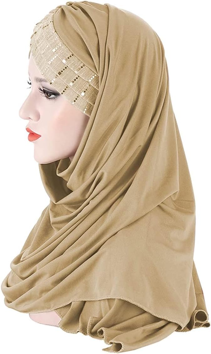 - CHIC DESIGN: Solid color decored with bling glitter in the front of this fashion muslim hijab, elegant and chic,one piece ready to wear, suitable for muslim women, hair loss, mother,indian or used as daily decor.