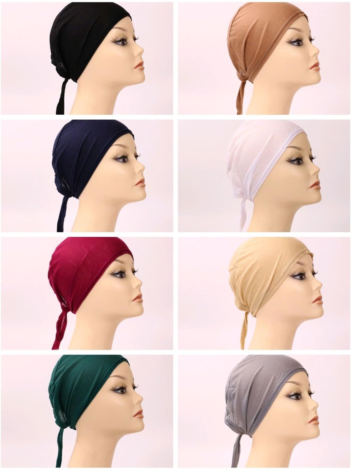 - 【ONE SIZE FITS MOST】-The underscarf hijab cap one size fits most. The undercap is adjustable since it has a tie back that you can loosen or tighten them to your liking. These under scarf for women hijab cap can cover all of your hair, they could stay in place throughout the day, won't slip backwards under your scarf.