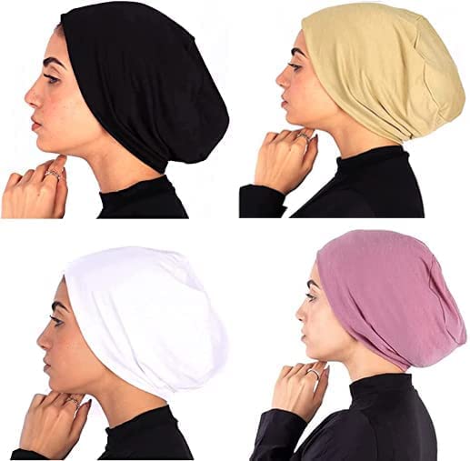 - Four-piece set: Includes a white, black, cashmere, and beige cap to match a wide variety of hijabs and outfits.