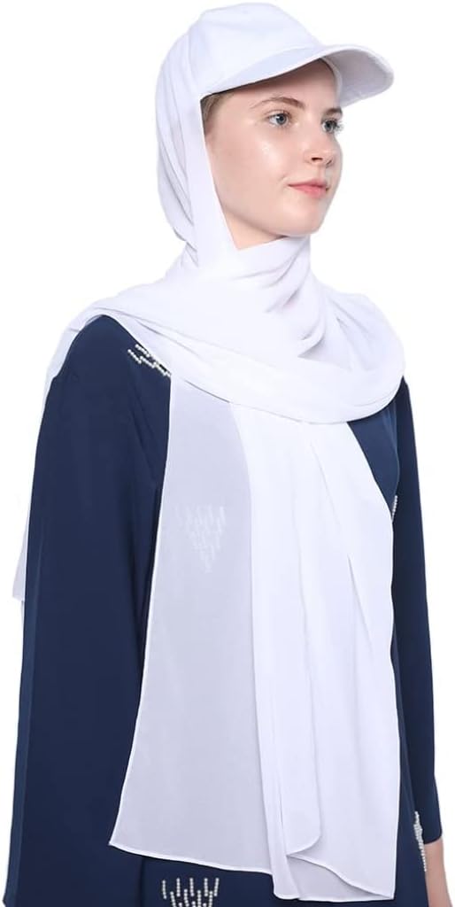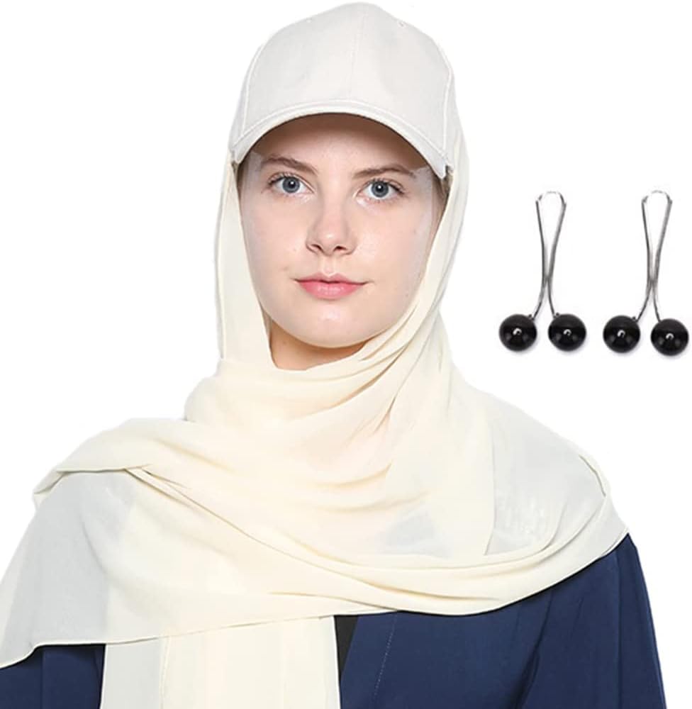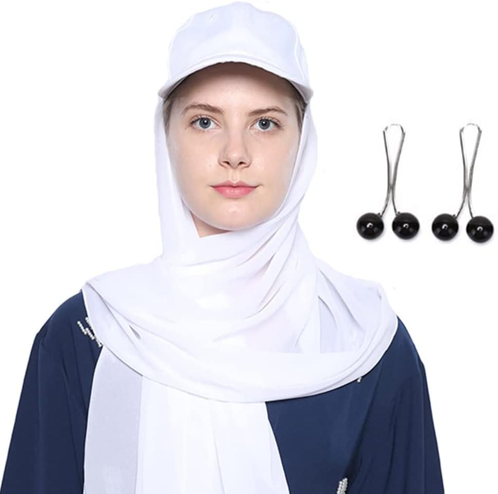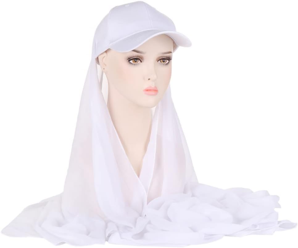 Goodern Women Muslim Hijab,Solid Color Scarf with Cap Instant Hijab Long Scarf Wrap Scarves Head Scarf,Adjustable Baseball Cap with Long Bubble Chiffon Scarf,Hat & Shawl All in One with Pearl Pins
