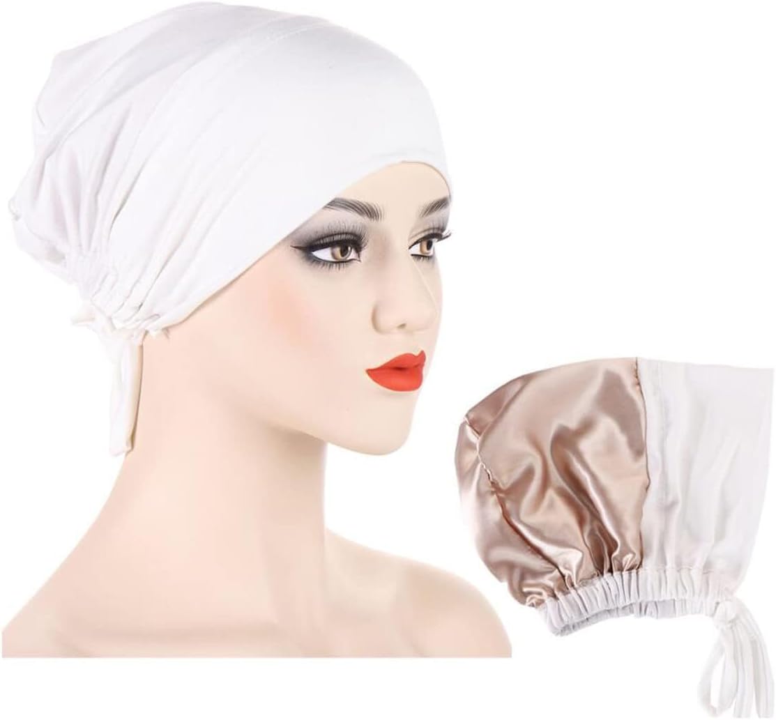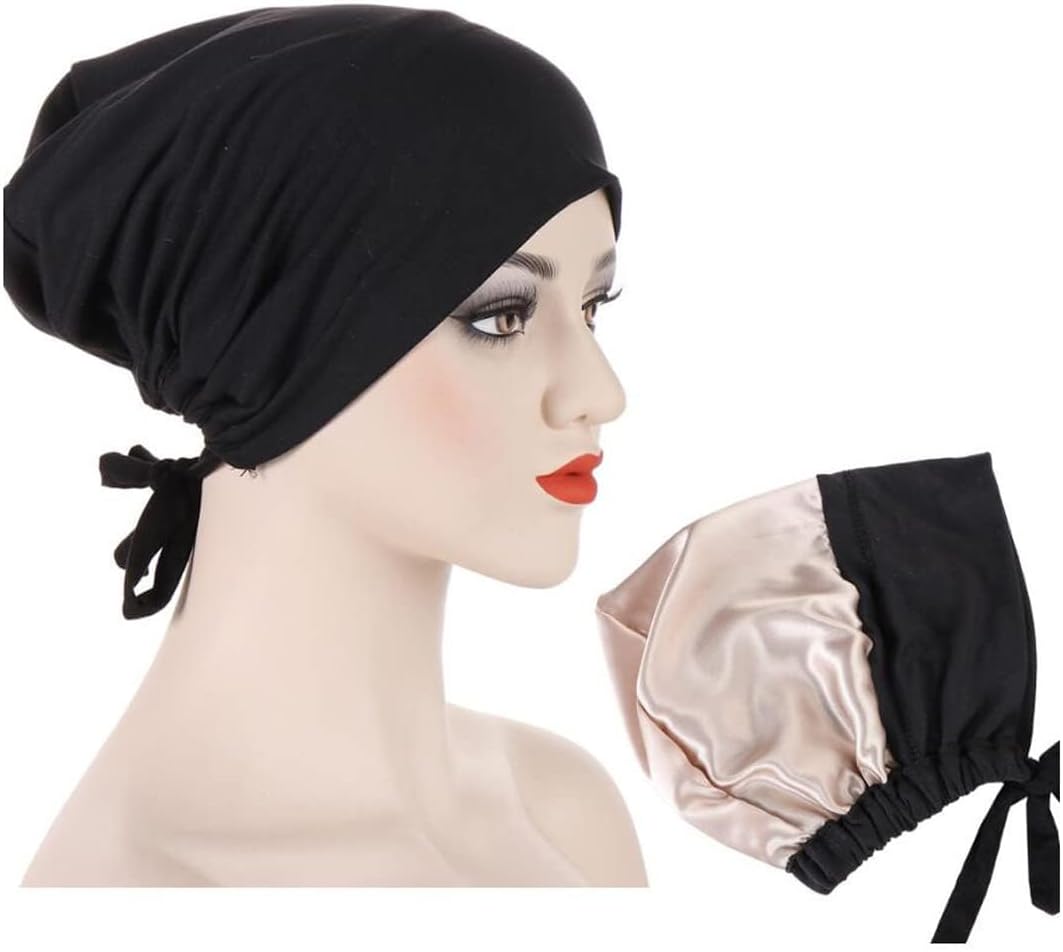 - [Protect Hair Healthy Shine] The silky satin lined hijab cap does not absorb moisture and reduces friction from the hair. Helps protect hair's healthy shine and prevent dryness and tangles.