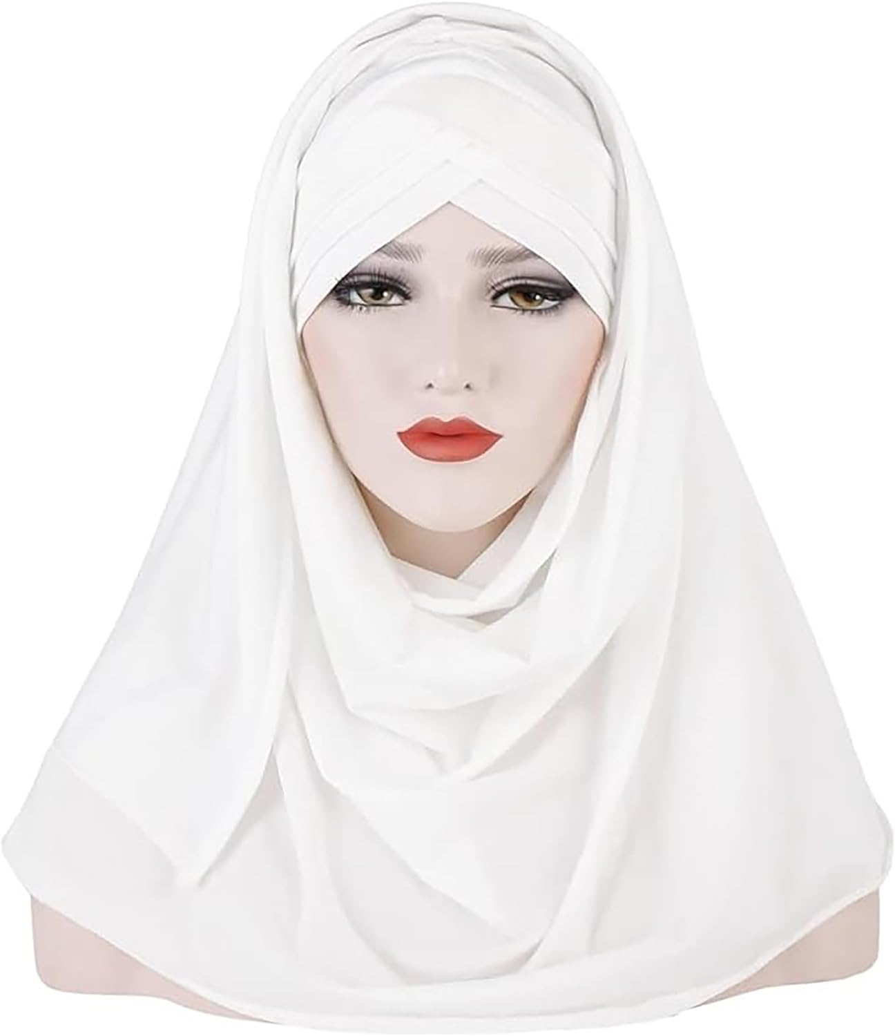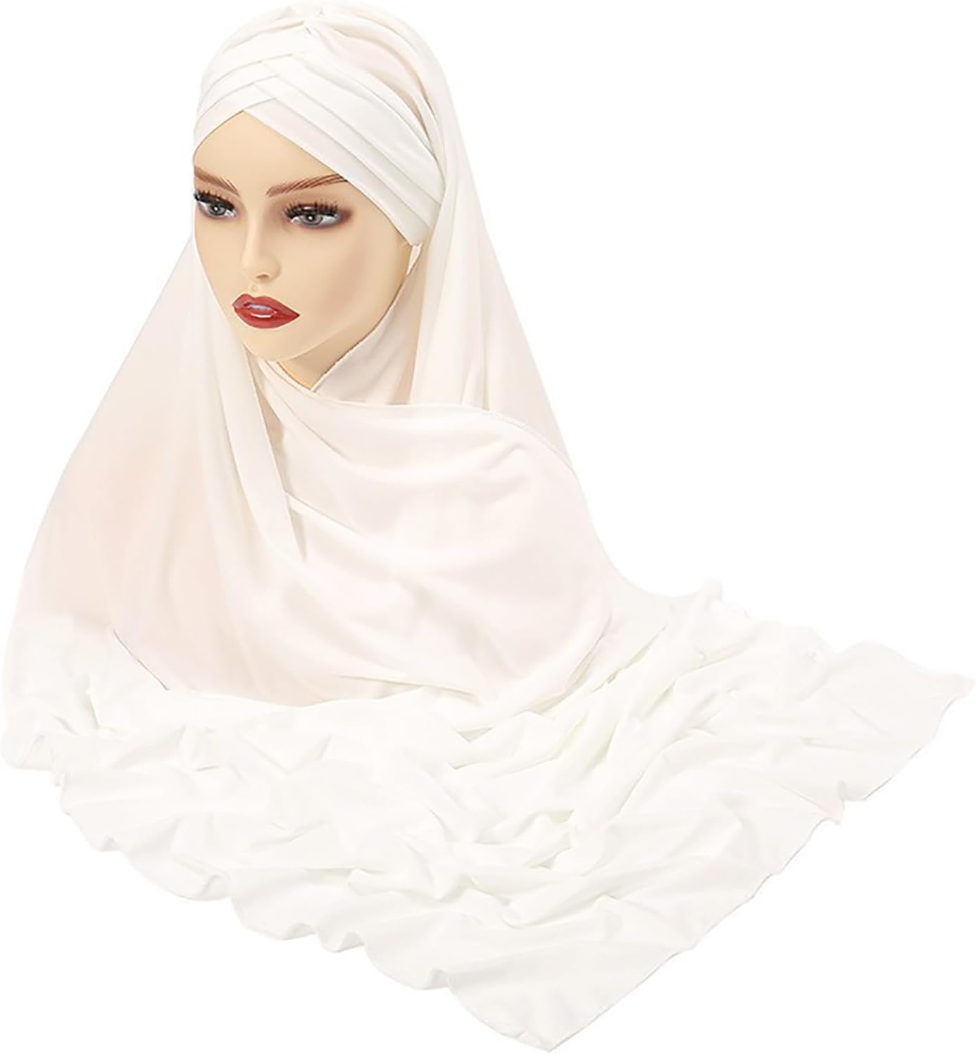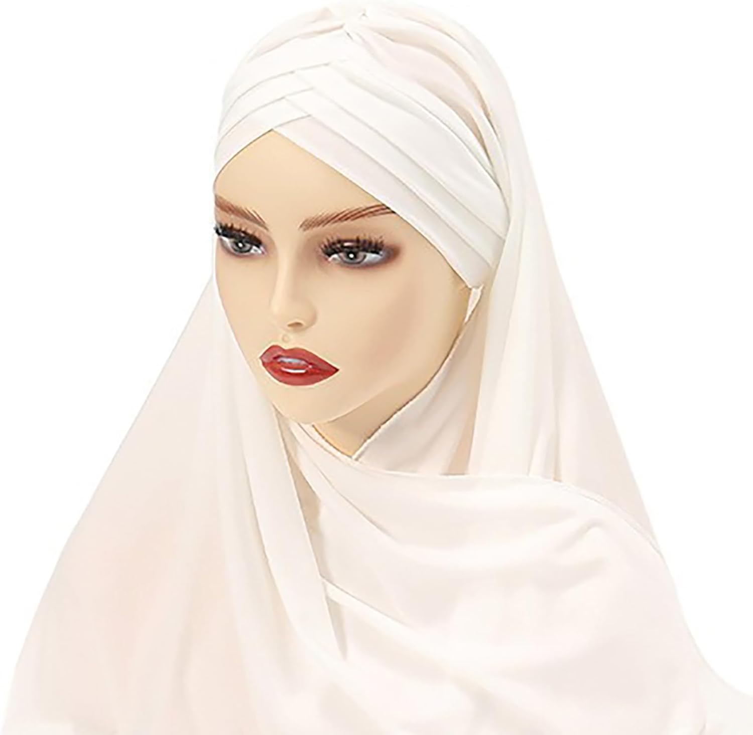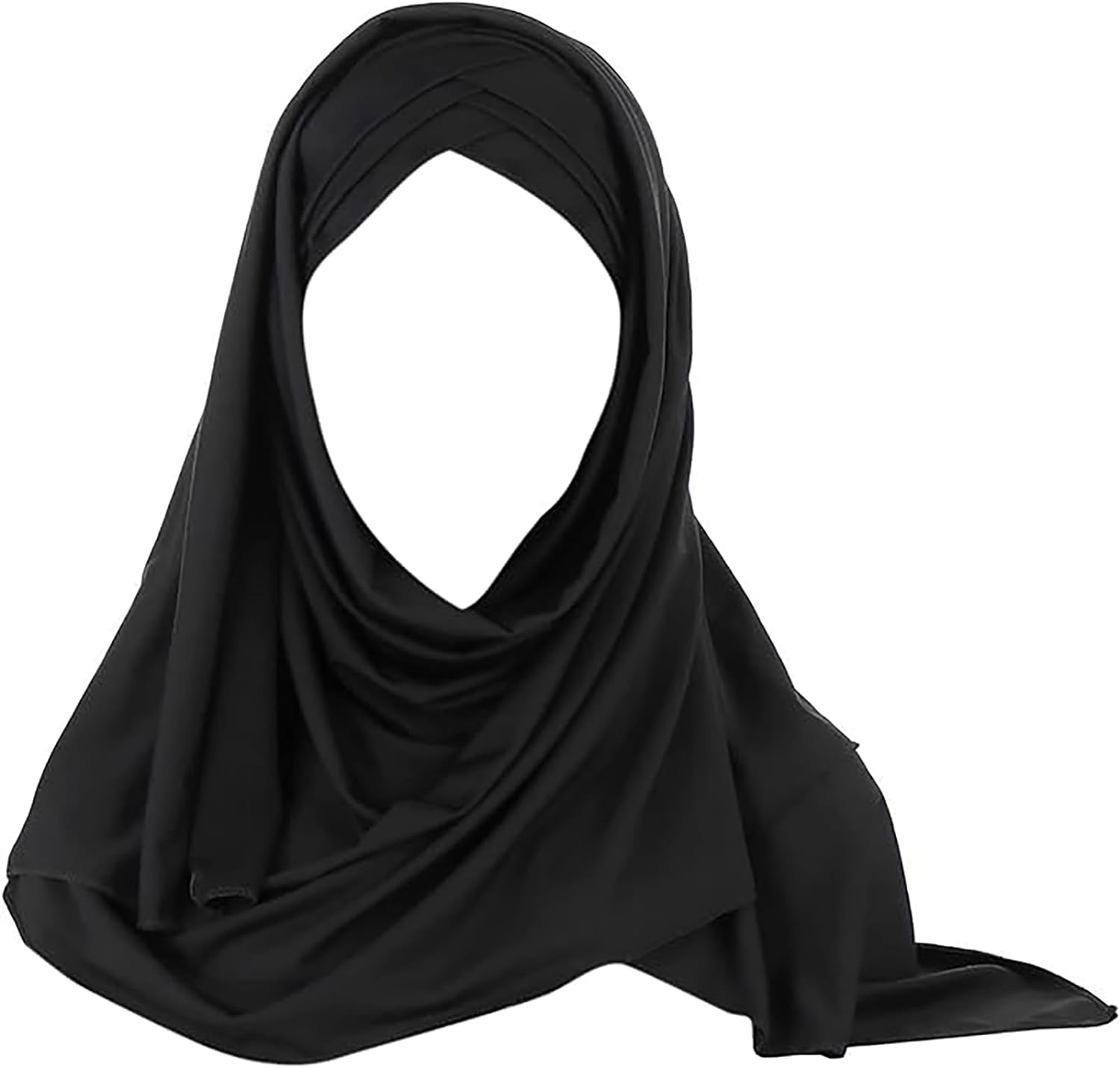 Women One Piece Jersey Hijab Lightweight Soft Solid Color Instant Hijab Shawls and Wraps Muslim Stretch Head Scarf