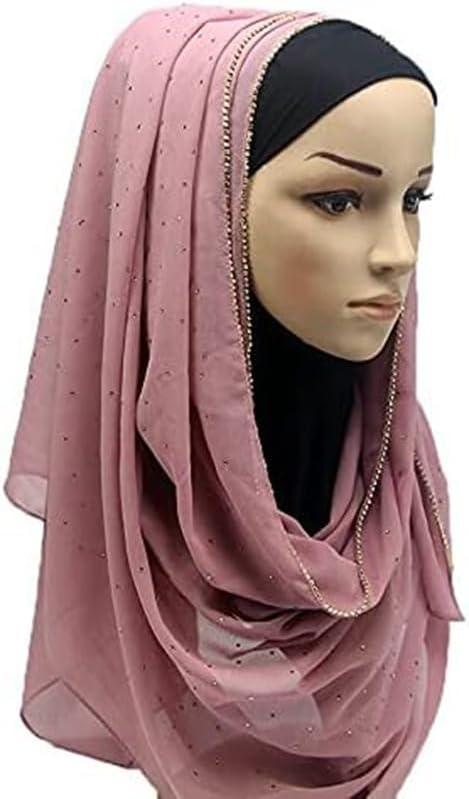 Women Soft Chiffon Rhinestone Long Scarf Shawl Fashion Muslim Hijab Head Wrap Scarves