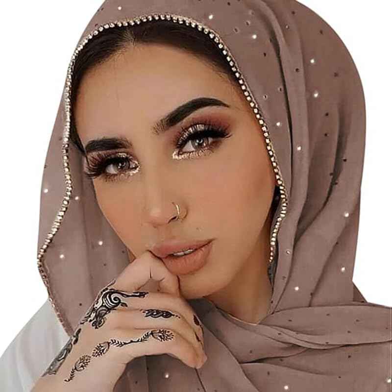 - ❤FASHION DESIGN - Bling bubble chiffon hijab scarf shimmer with crystal rhinestone edged,The rhinestones on the shawl are not easy to fall off. Exquisite and delicate accessories, shiny and fashionable