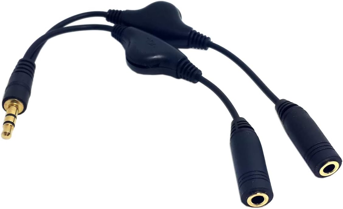 CY 3.5mm Stereo Male to Double 3.5mm Female Audio Headphone Y Splitter Cable with Volume Control Switch