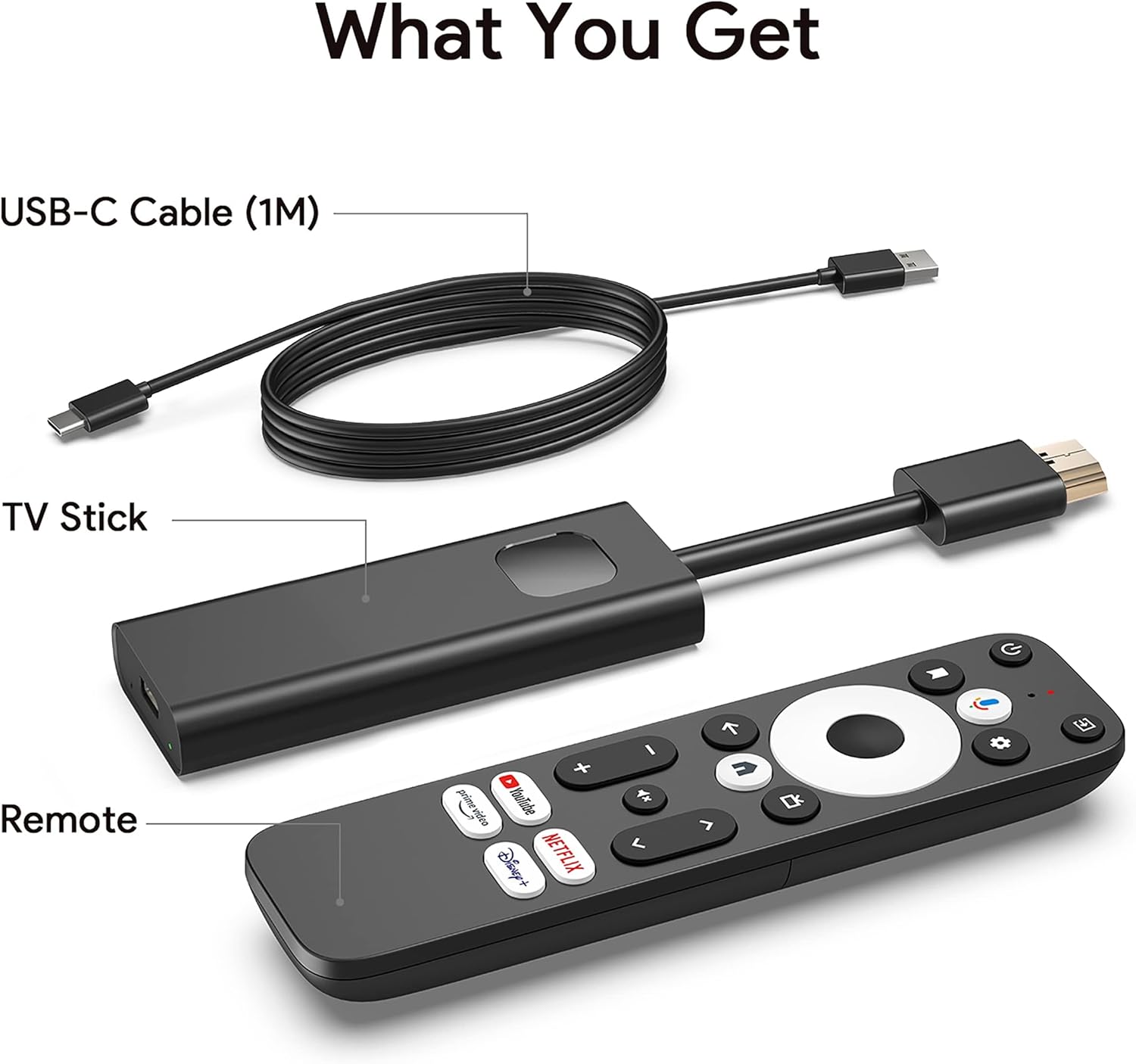 Android TV Stick, Google Certified Stick 4K Streaming Device Google Chromecast Smart TV Stick High Definition Streamer with HDMI Cable and Voice Search Remote for Netflix Certified, Google Assistant