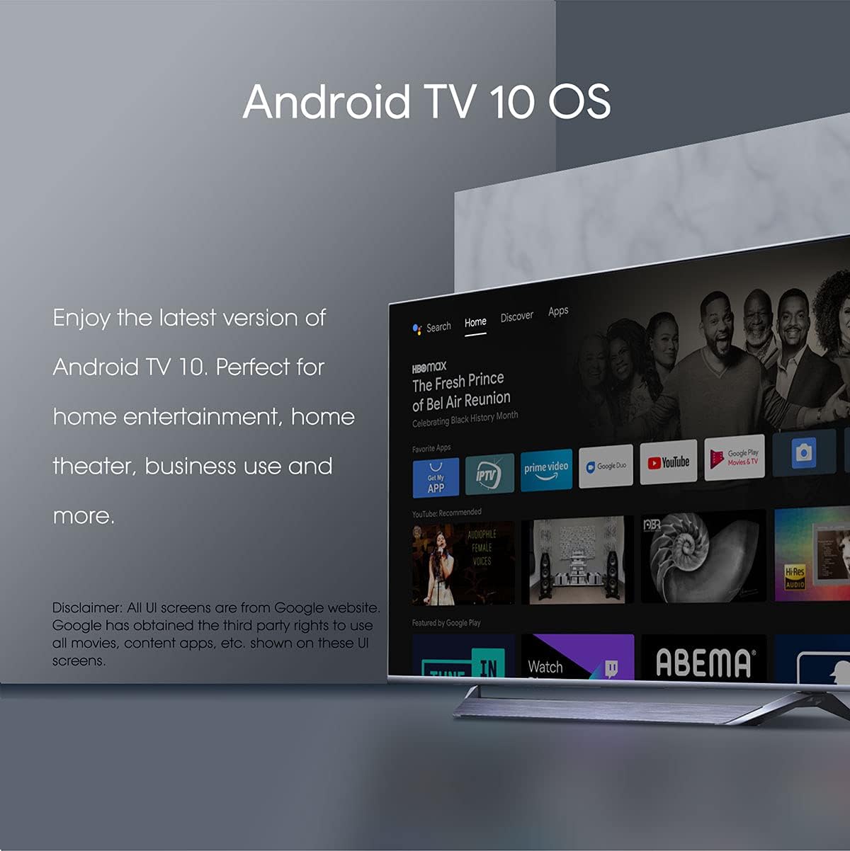 Access Tons of Contents, Enjoy movies and TV episodes from Netflix, VUDU, YouTube, and more, Netflix 4K, Disney+, Prime Video 4K, Youtube 4K, Sling, STARZ, TUBI, HBO MAX, Google Play Store, Google Music, Google Movie.