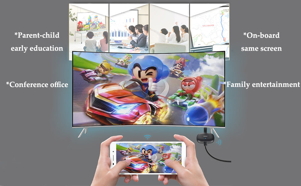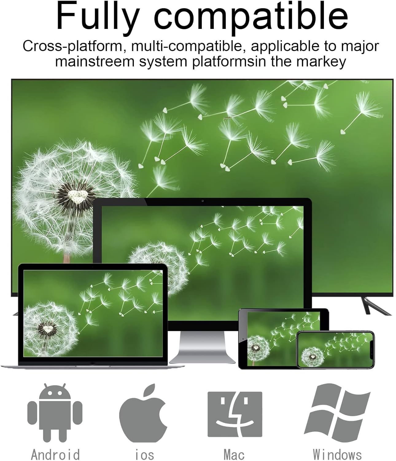 Professional wide: iOS/Android/Windows/Mac OS system, suitable for mobile phones, tablets, Mac books, Samsung, LG, HTC, PC, etc., support Miracast/Airplay/DLNA functions.