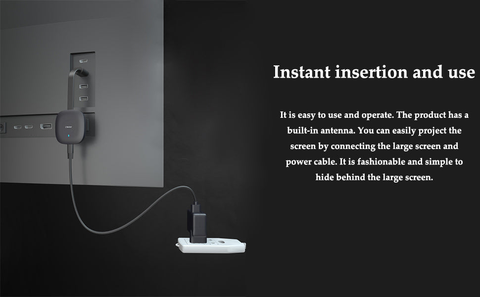 Plug and play: Easy to operate. No applications and drivers are required, only an external WLAN antenna is required to receive wireless signals freely. With three steps of plug-in->connection->mirror, you can easily enjoy music, videos, photos, office files and websites on the big screen.