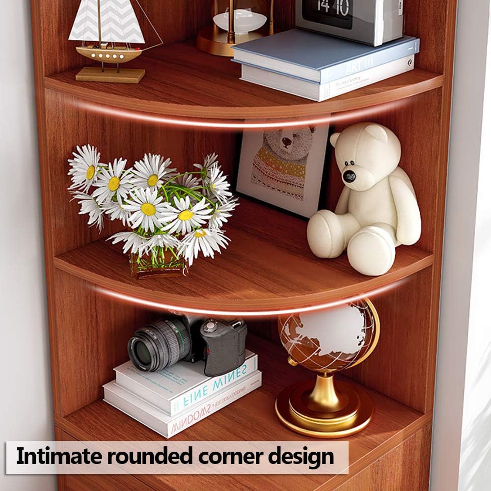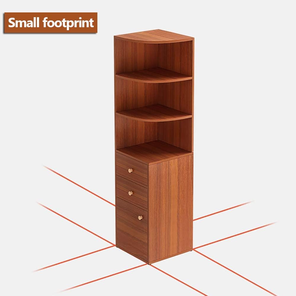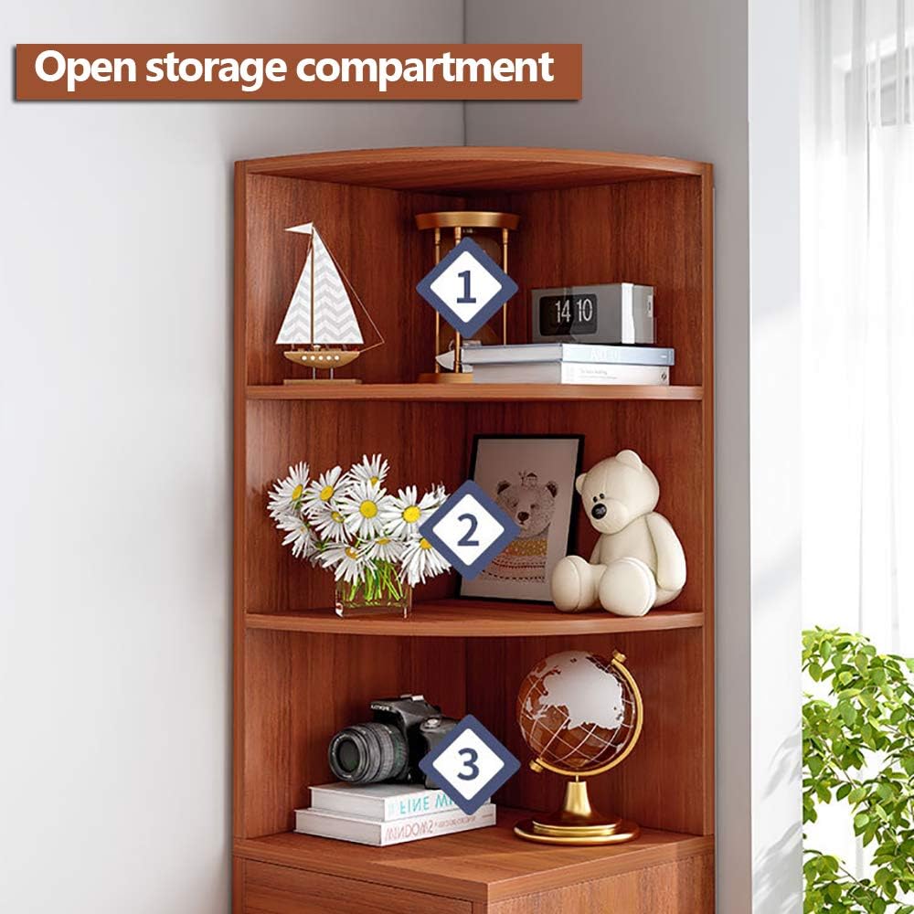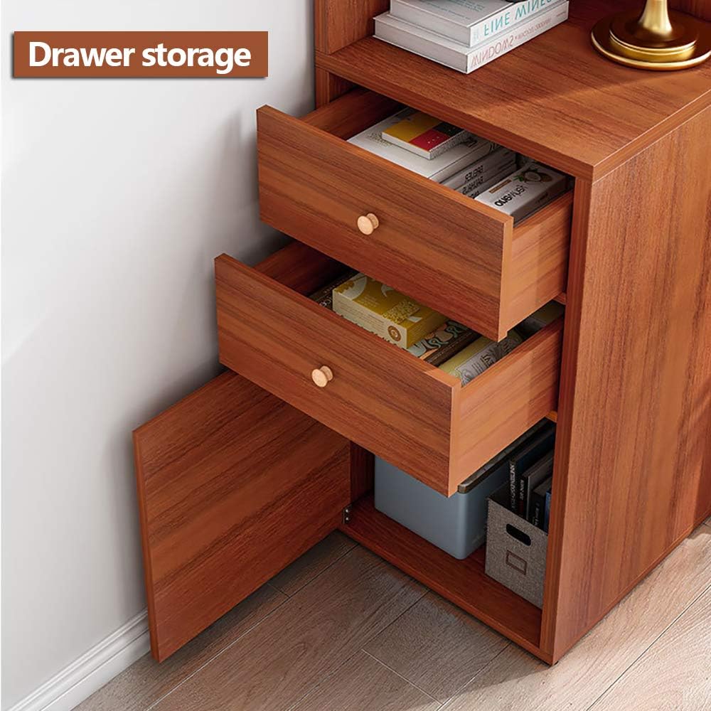 NAR Corner Storage Cabinet, Free Standing Pantry Cabinet with 2 Drawer Cabinet and 3 Shelves, Home Office Furniture Bookcase, Side Cabinet, Cupboard, Wood Cube Organizer (G153-Cherry S)