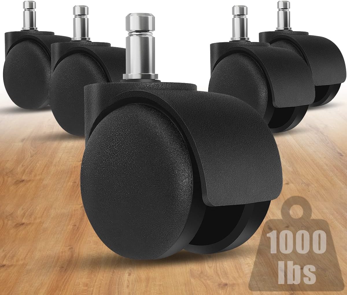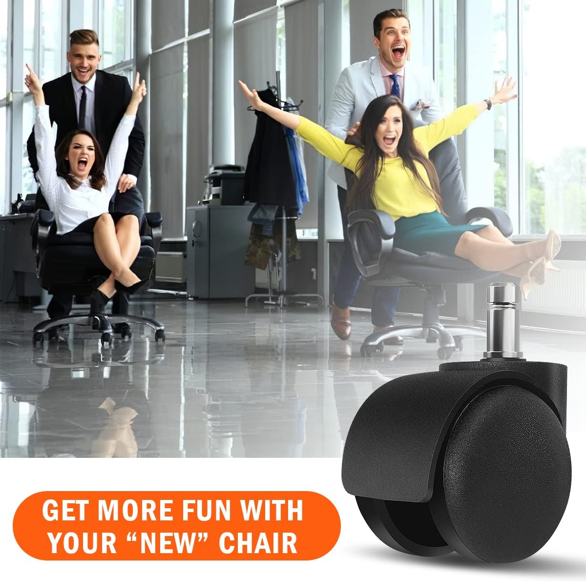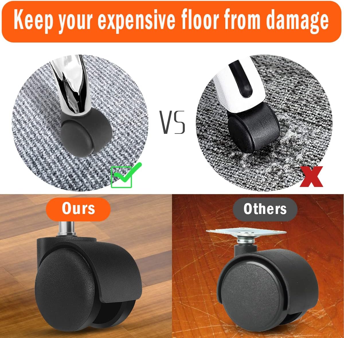 [Heavy duty capacity]:The office chair rollers are ruggedly constructed to withstand heavy loads with ease. On a single wheel it can hold up to 300 pounds. Rest assured that your chair will remain stable and secure even when used for extended periods of time or when supporting larger people.