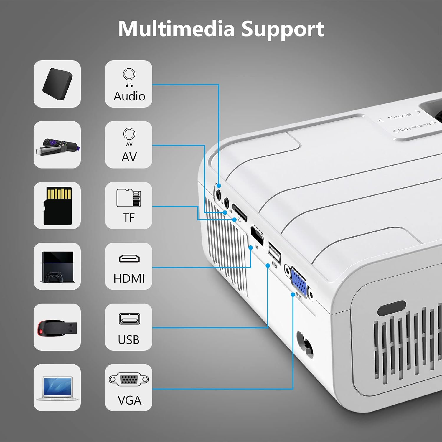Wide compatibility: gimisonic 1080p projector home theater video projector is also equipped with hdmi/usb/av/vga/sd port which can properly compatible with tv stick, smartphone, tablet, laptop, video games, usb stick, micro usb card, etc. Perfect for playing videos, tv shows, sports events, and sharing photos.