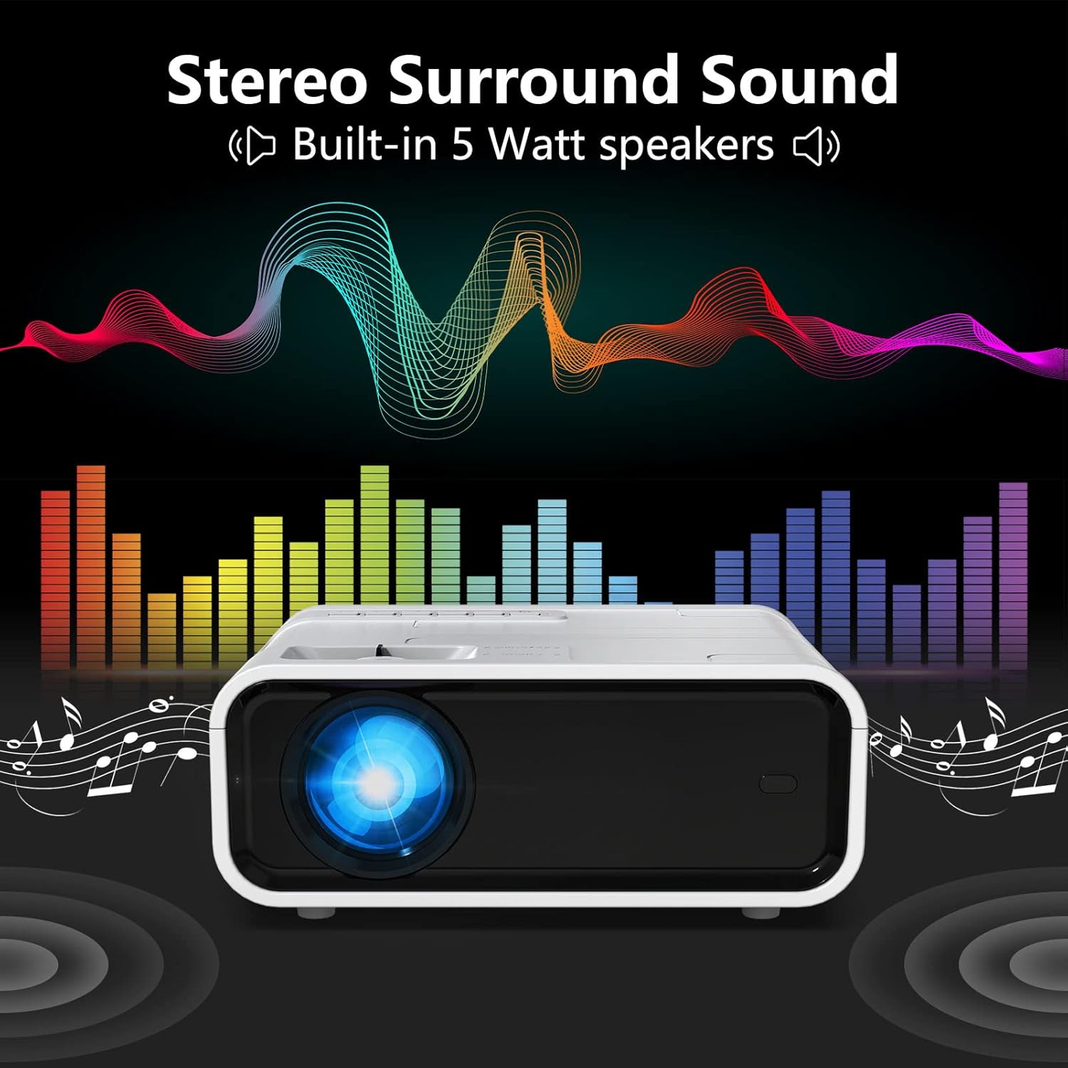 Built-in speaker & big screen: the built-in stereo speaker features srs sound system, so powerful to provide a great auditory sense experience without external speakers. Besides, this projector offers the watching size from 35 to 200 with projection distance from 2.5-4M(with sizes raning between 60 and 120 inches), for enjoying big-screen home theater with your friends and family.
