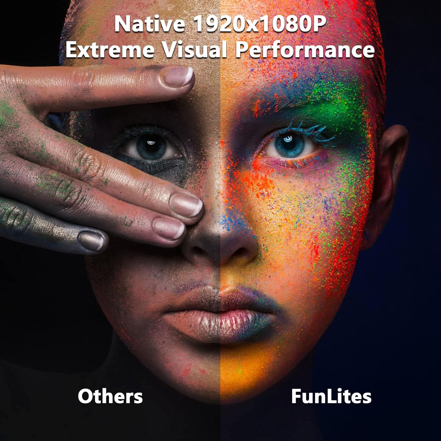 Full hd native 1080p projectorthe gimisonic projector comes with native 1920x1080p with full hd resolution that provides clear color and crisp images for home theater and outdoor movie. Contrast ratio of 10000: 1 it will being you 10 times more details than 1080p supprorted projectors. It's the most cost-effective 1080p projector.