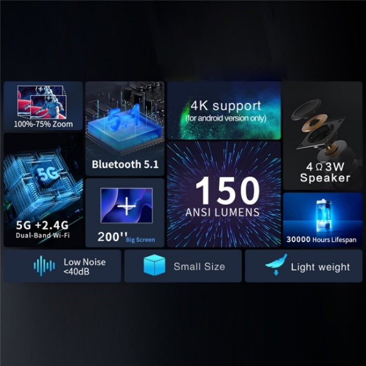 2. Supports 2.4G/5G WiFi connection, the connection is more stable and the coverage is wide. You can easily connect the projector and iOS/Android devices.
