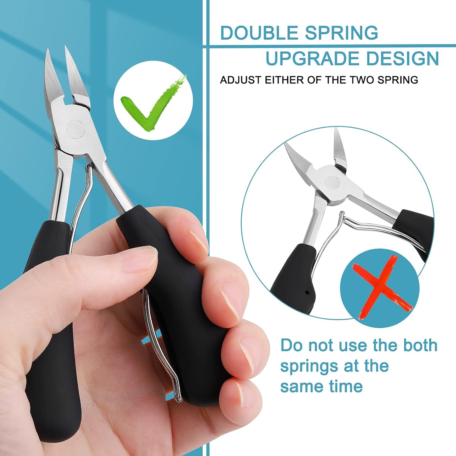 ✅ Durable& Anti-Slip Handle: Made with ABS material that is non-slip & softer, use an ergonomic handle for comfort, firm grip & easy cutting. Double spring of heavy duty toenail clippers for long-lasting use. Extend its service life.