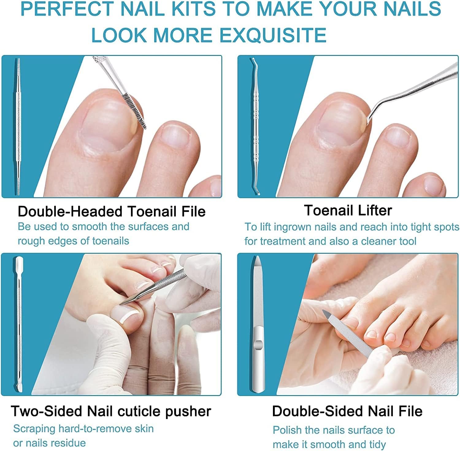 ✅ 5-In-1 Manicure & Pedicure Set: It contains: Ingrown Toenail Clippers×1 + Finger Nail Clipper×1+ Nail File×1+ Nail Lifter×1+ cleaning cloth×1. Meet your different nail trimmer needs. The pedicure kit can be great gift for your family and friends.