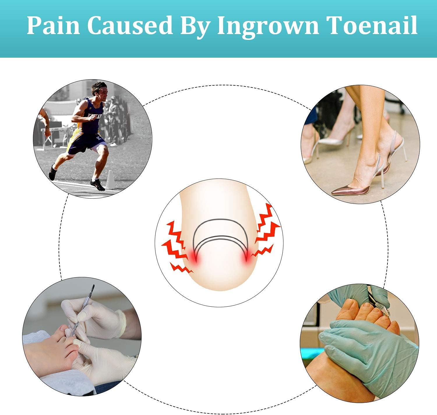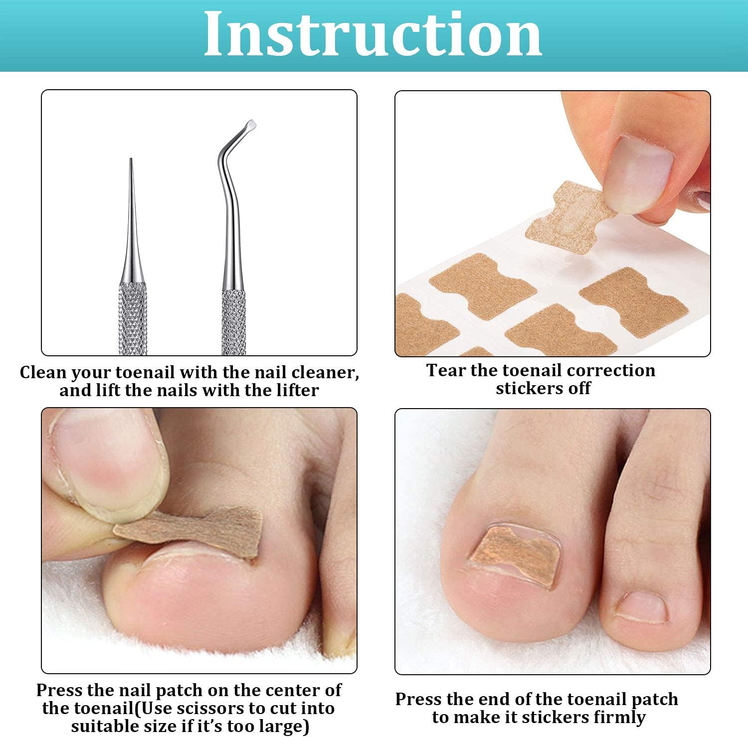 【Ingrown toenail tools】: Our package includes 1 piece of nail cleaner, 1 piece of toenail lifter, 60 pieces of curved toenails brace stickers, and 60 pieces of ingrown toenail correction stickers, 122 pieces totally, a good combination and sufficient quantity to help you away from the discomfort caused by ingrown toenails.