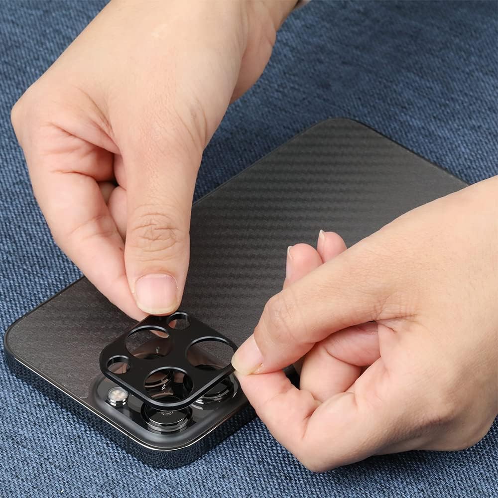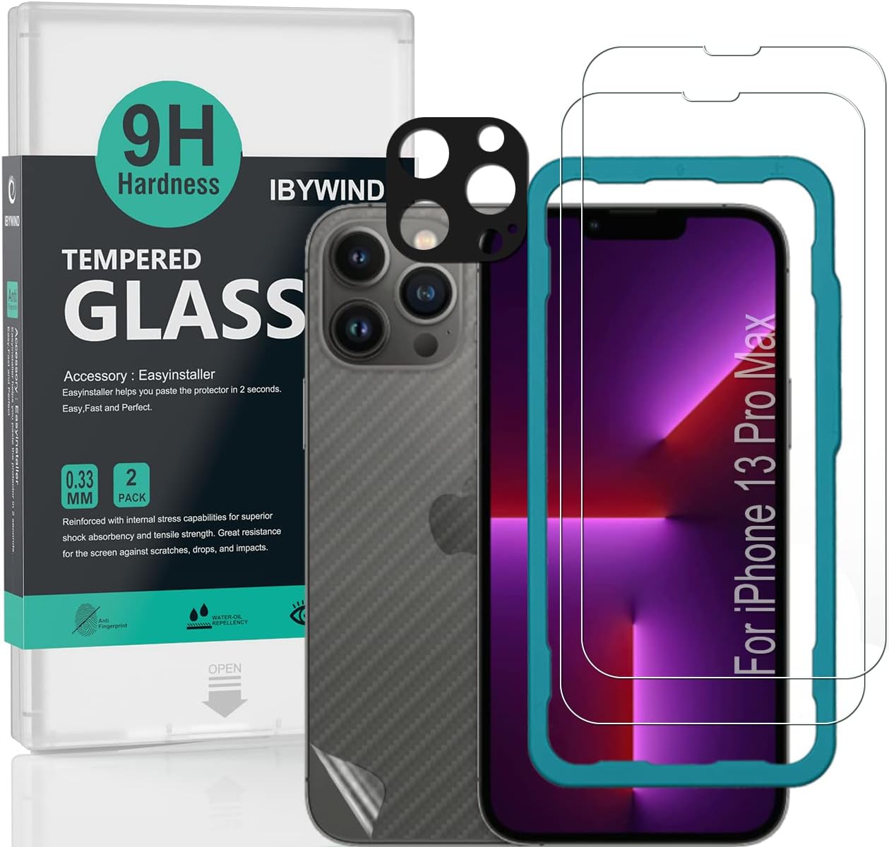 IBYWIND [Pack of 2] Screen Protector for iPhone 13 Pro Max 6,7",with Metal Camera Lens Protector,Back Carbon Fiber Skin Protector,Including Easy Install Kit