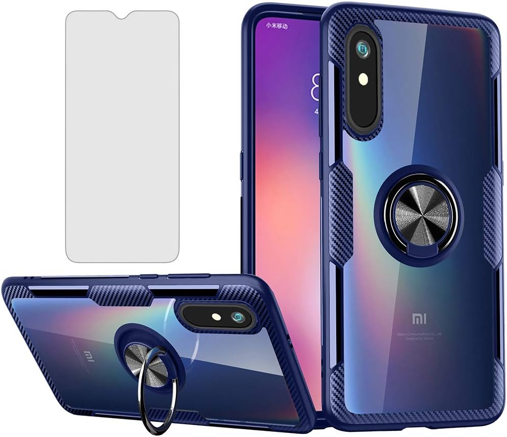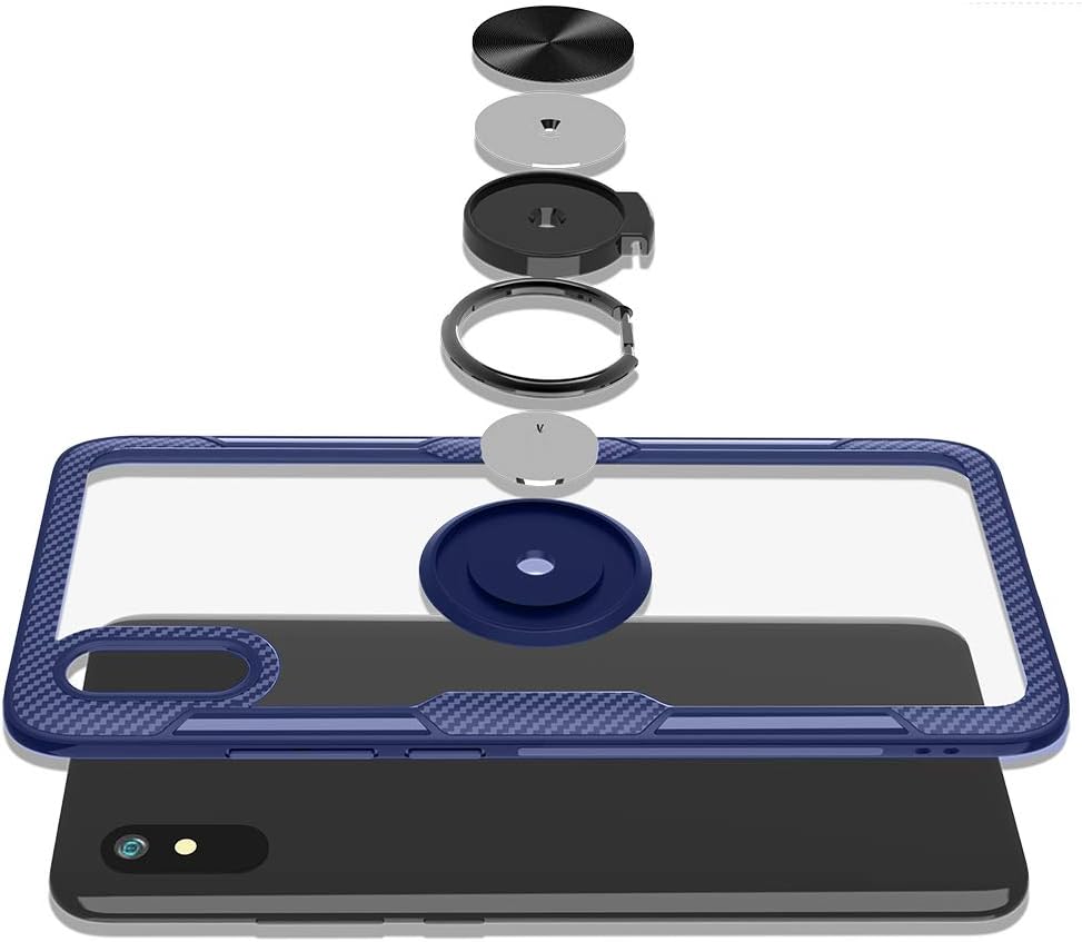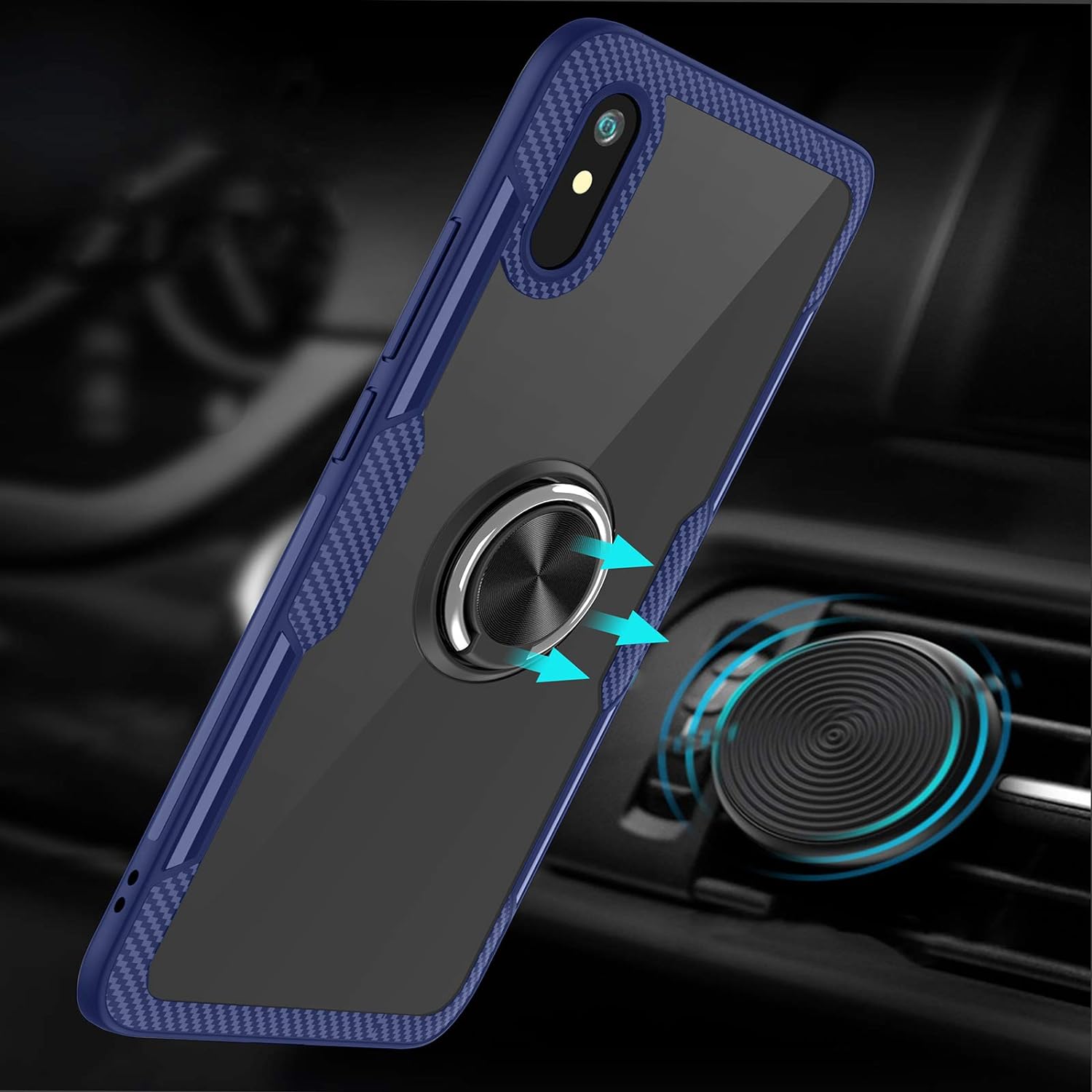Phone Case for Xiaomi Redmi 9A Redme 9i with Tempered Glass Screen Protector Clear Cover and Magnetic Stand Ring Holder Hard Cell Accessories Xiami Xiomis Xiome Redmi9A A9 Redmi9i i9 Cases Men Blue
