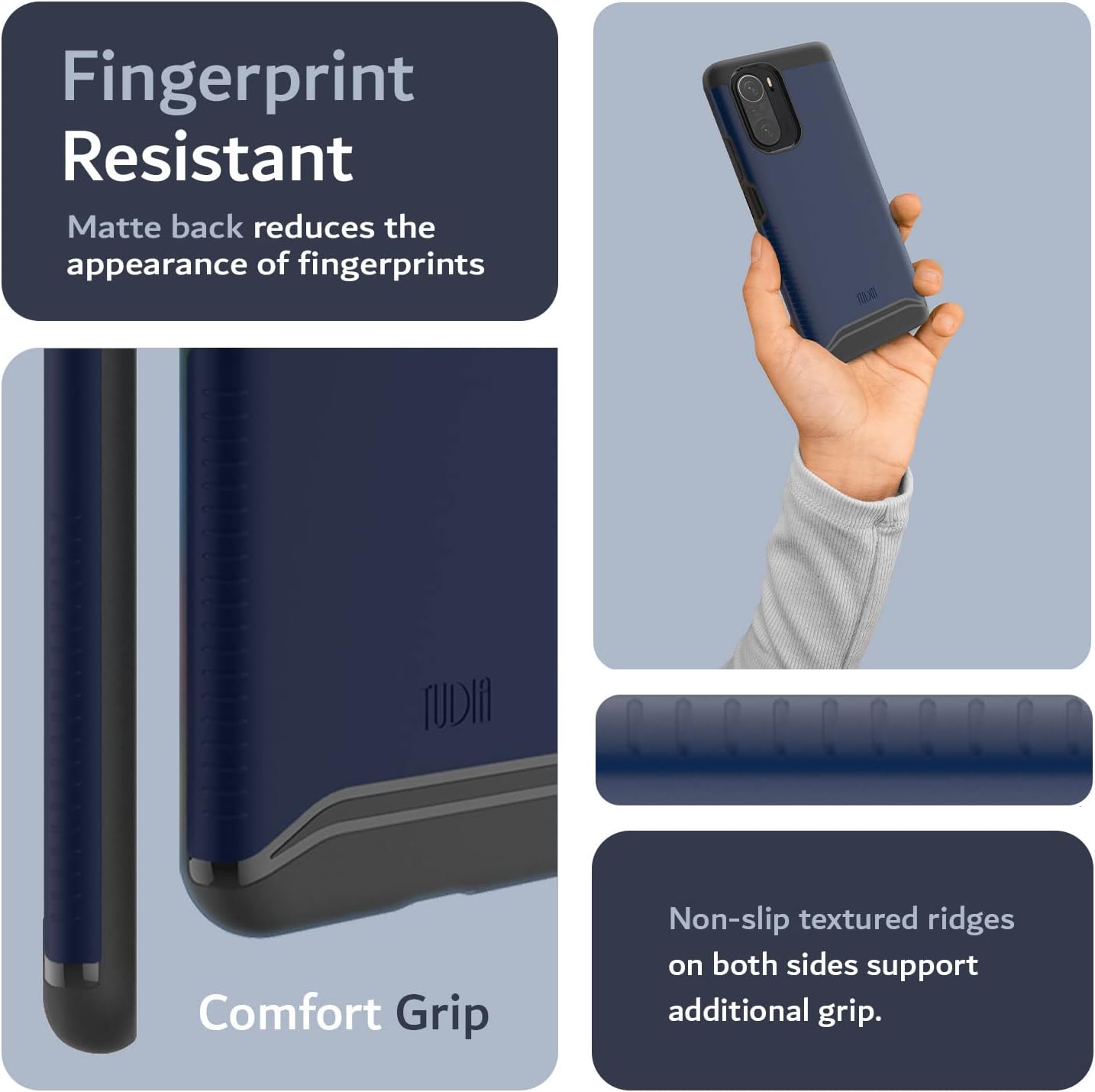Non-slip textured ridges on both sides provide additional grip and comfort while holding your phone