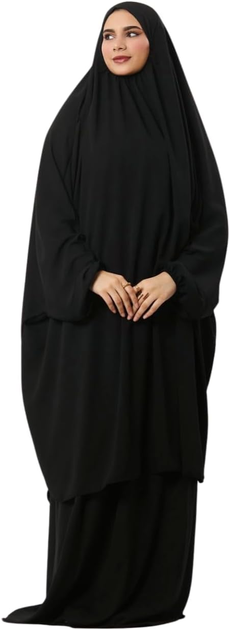 - Professional Designer Quality - Get the highest quality with this two-piece abaya set! Its flattering fit and elegant style are perfect for any occasion. Enjoy comfort and fashion while wearing this prayer dress.