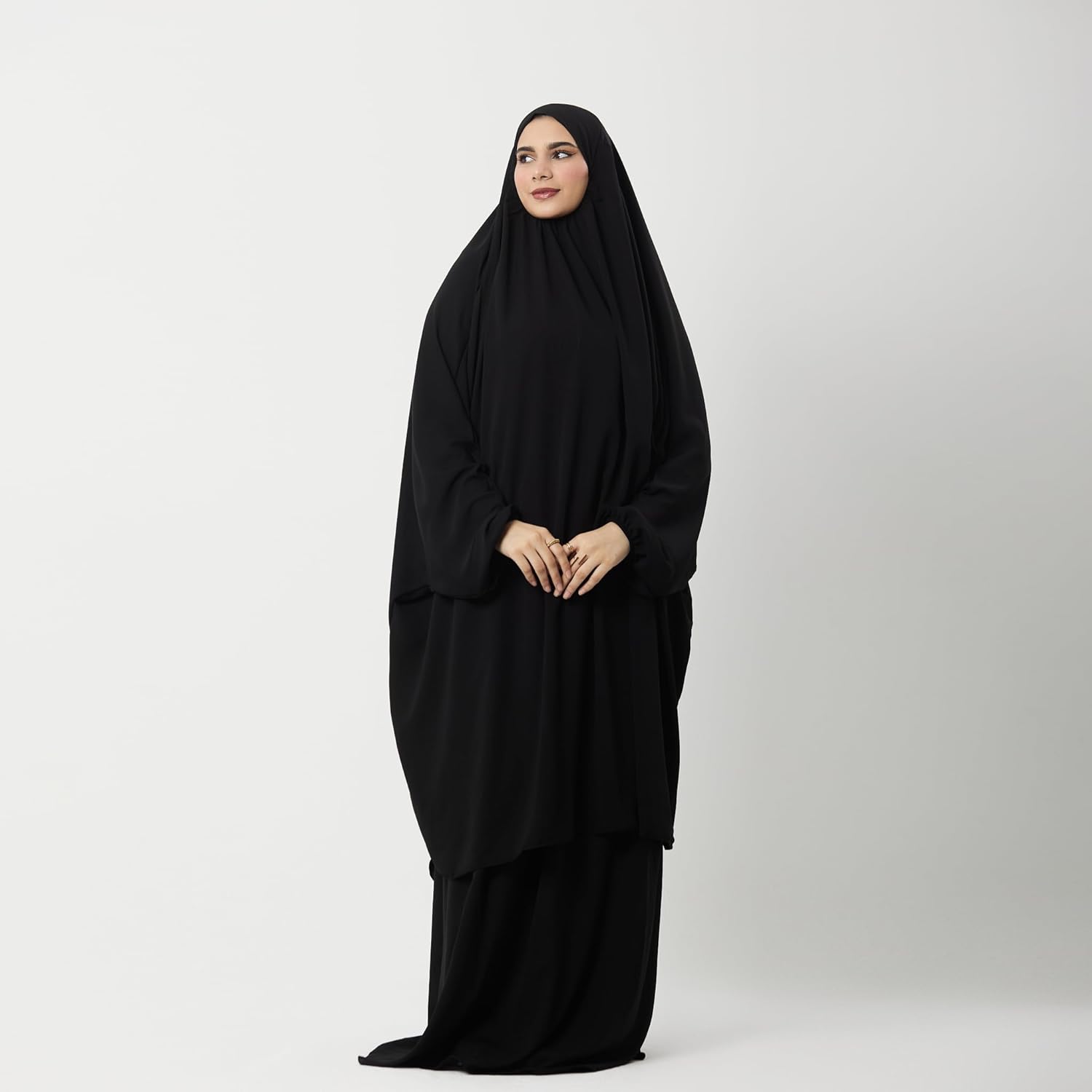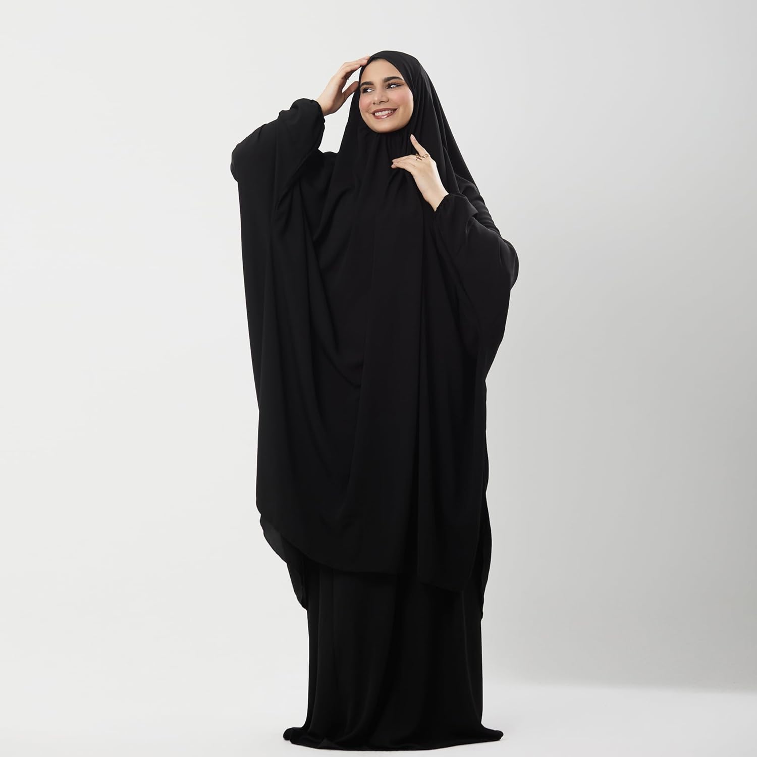 Abaya Prayer Dress Two Piece in Crepe Fabric | Modest Islamic Prayer Clothing for Women Prayer Dress Set By Noury