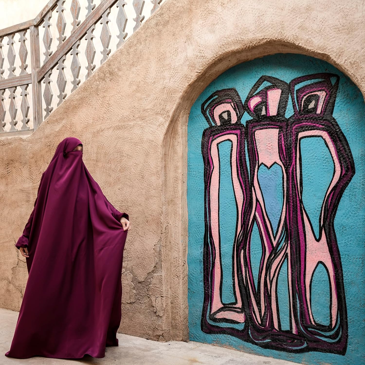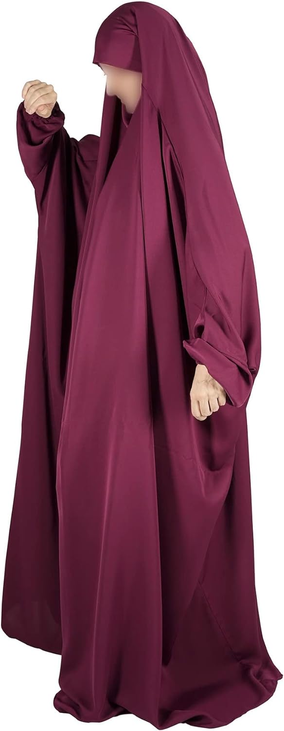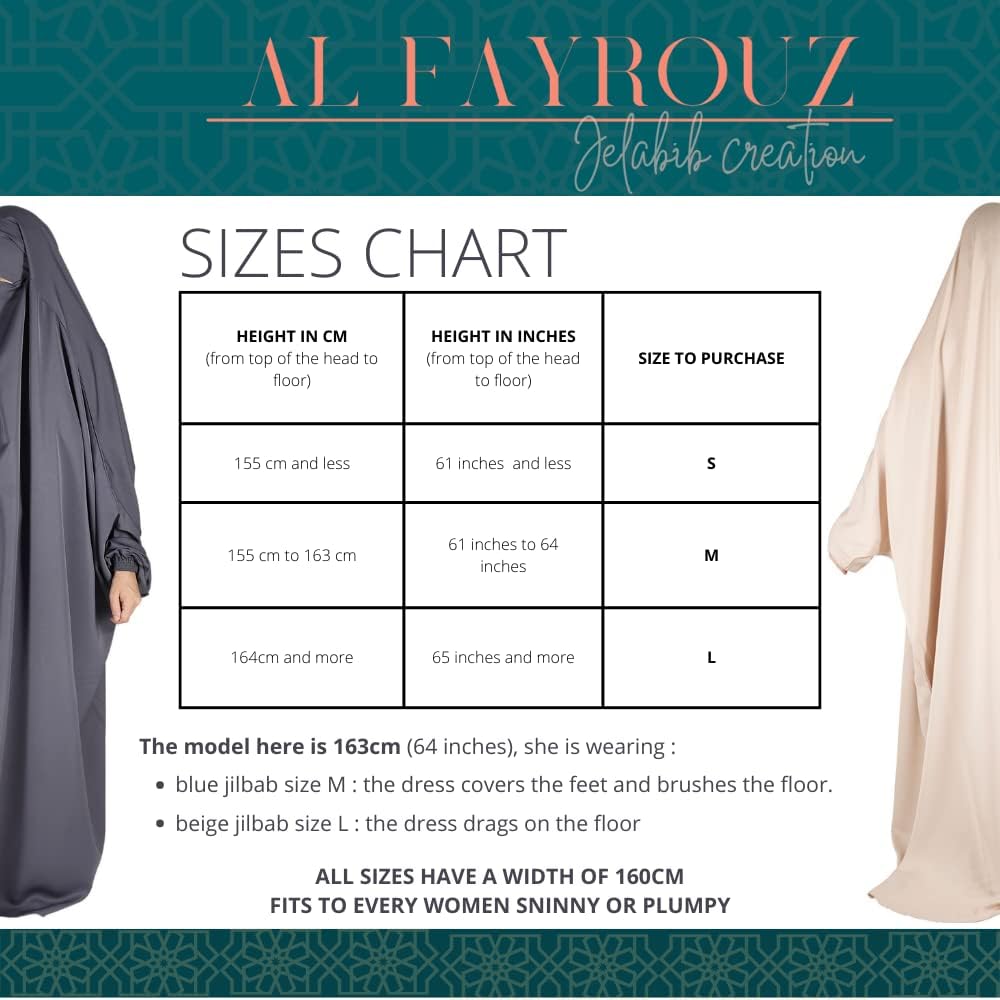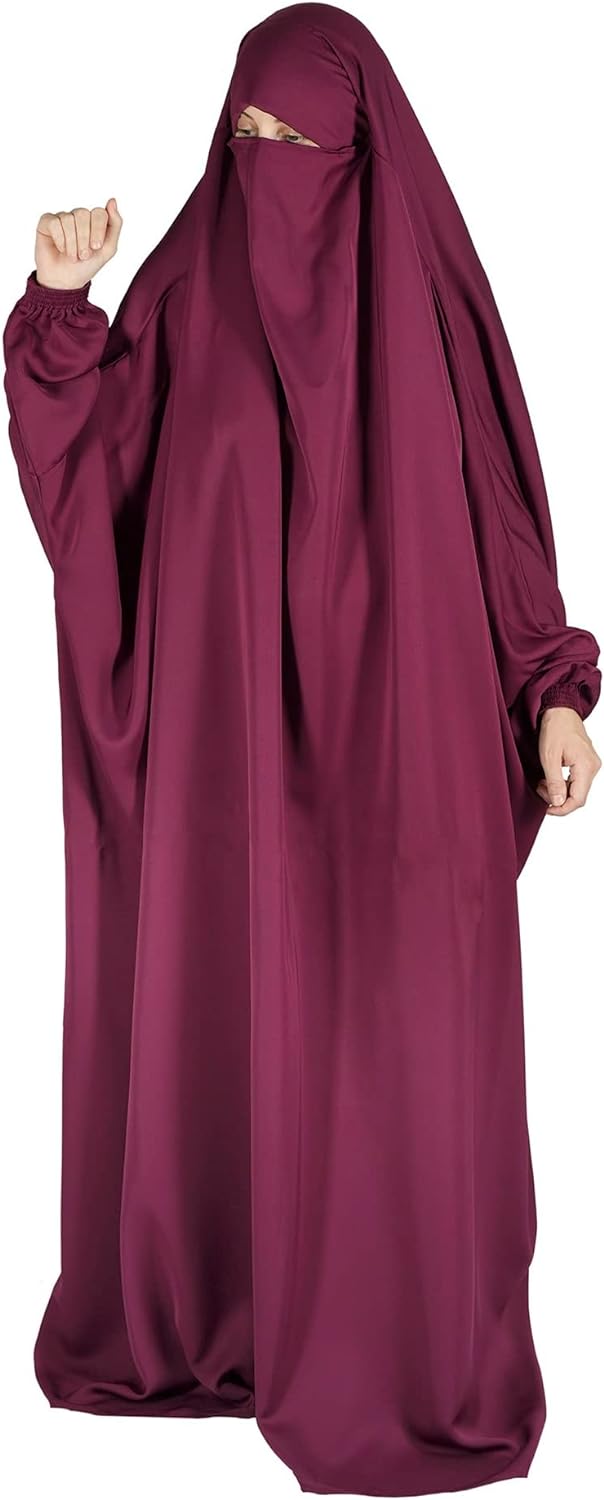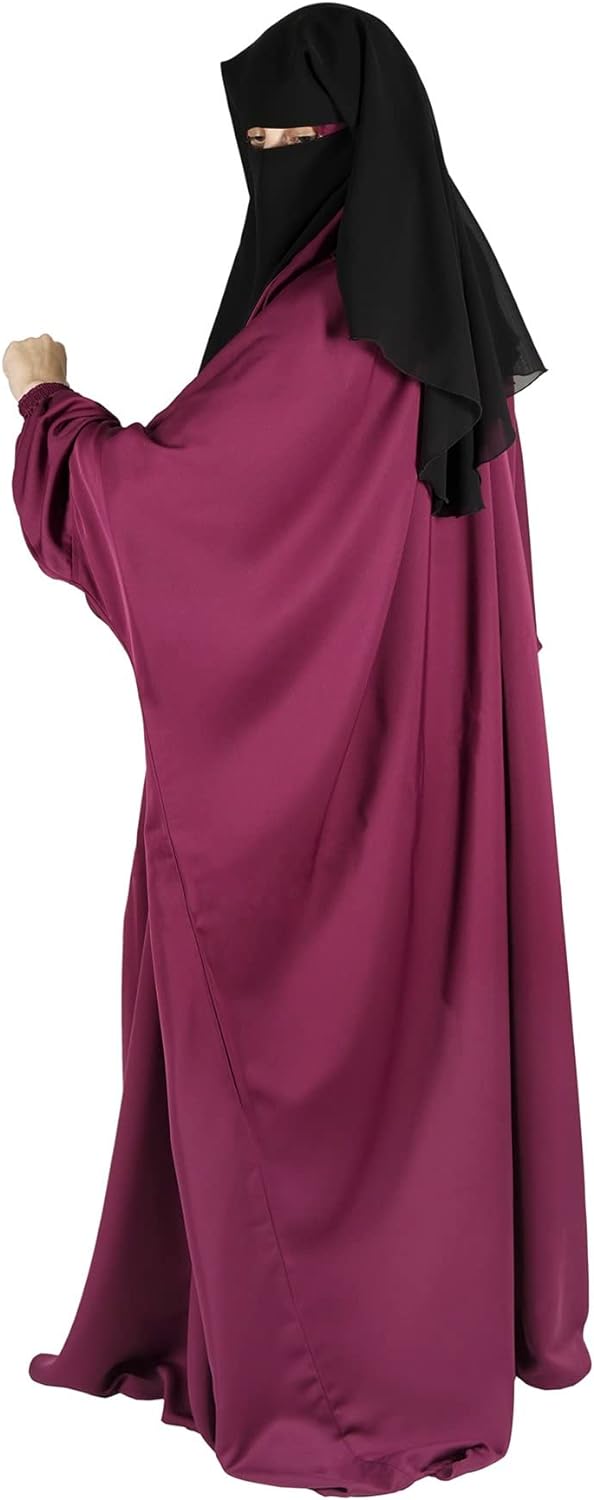 - {MODEST FROM HEAD TO TOE} : With maxi width 160cm, our loose women's jalabiya won't reveal the shape of our body, it has integrated Niqab option with Elastic cuffs so yout arms will be completely covered.