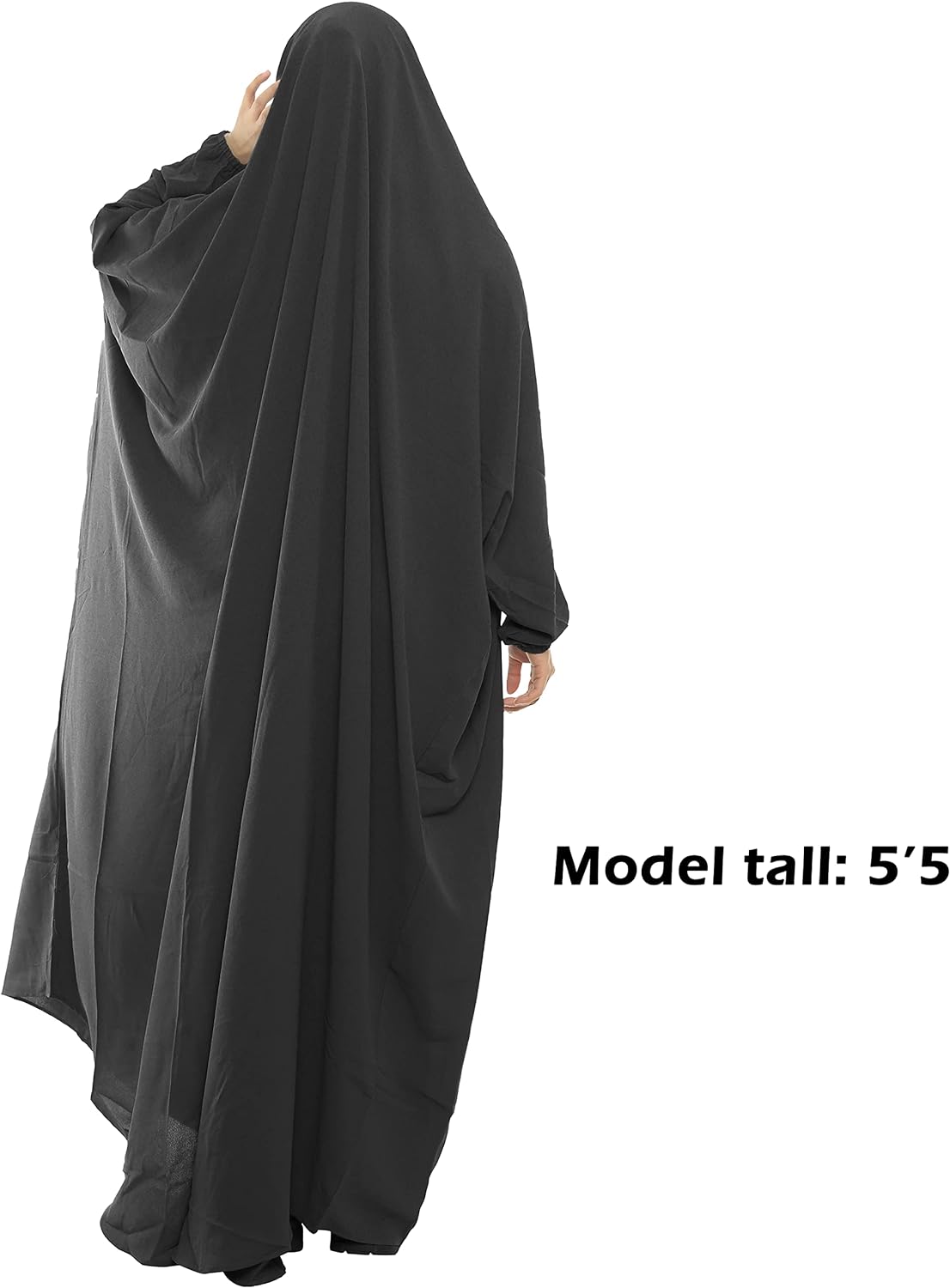 • Jilbab total length(includes heads): 69inch, exceeds the knee and can cover the instep. Loose cut. Weight about: 1.4lb/set
