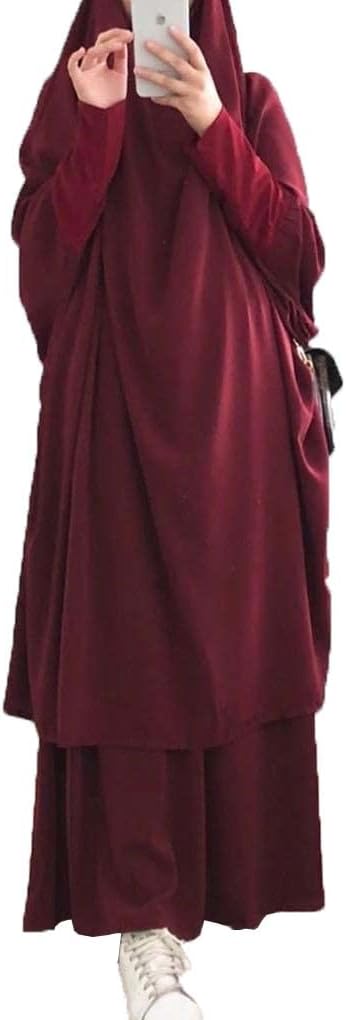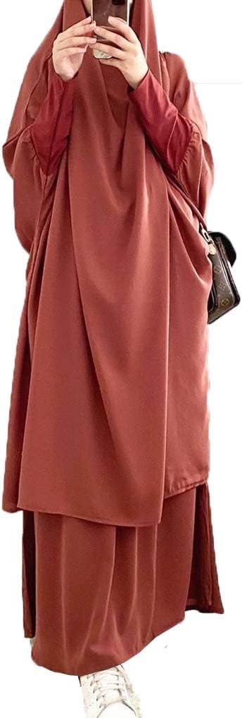 Muslim Two-Piece Prayer Dress for Women Abaya Dress Islamic Middle East Dubai Maxi Abaya Kaftan with Full Length Hijab Dress