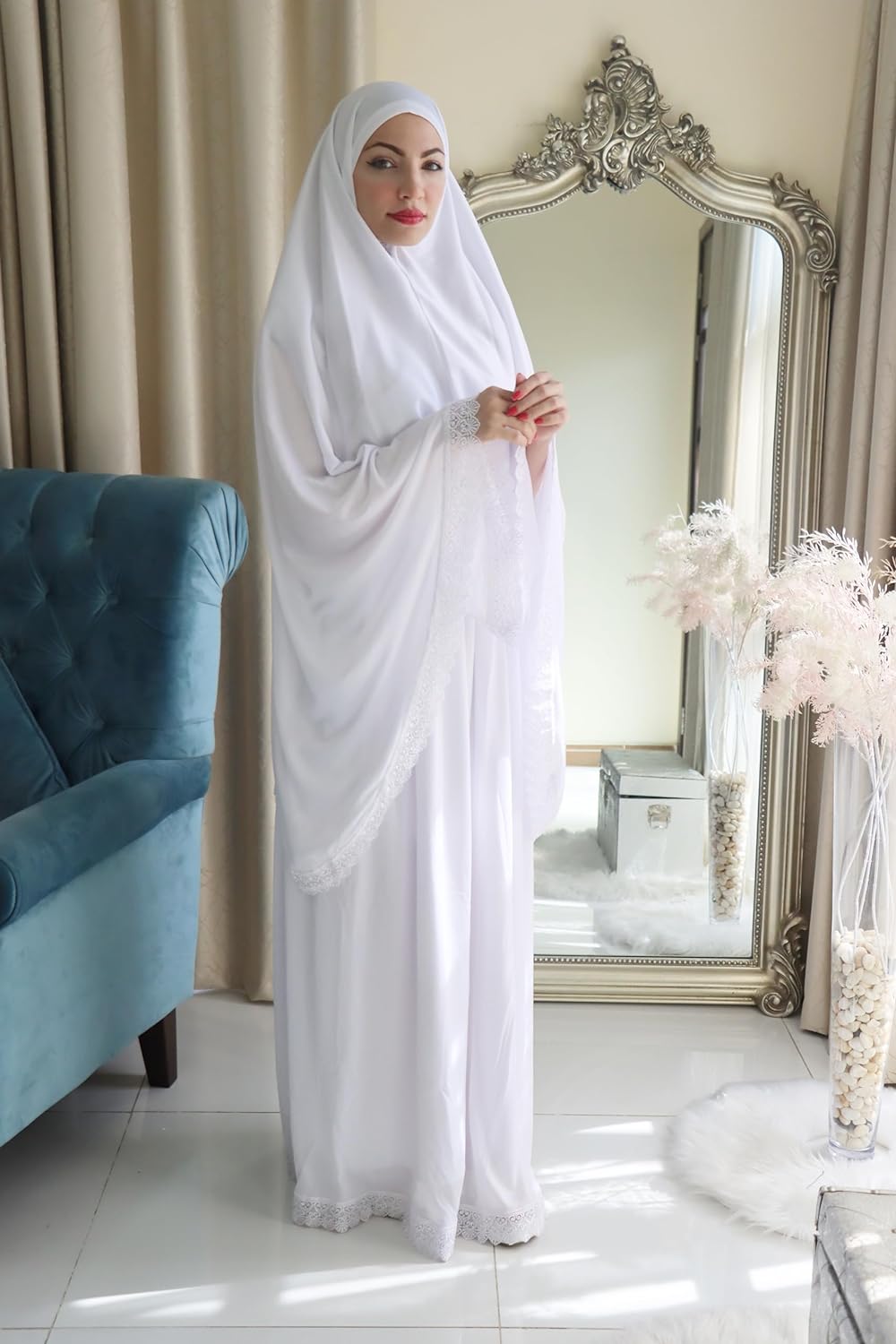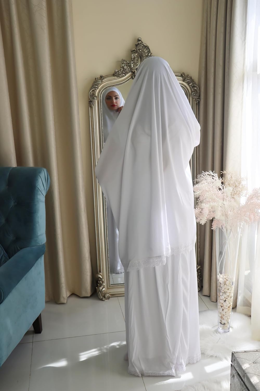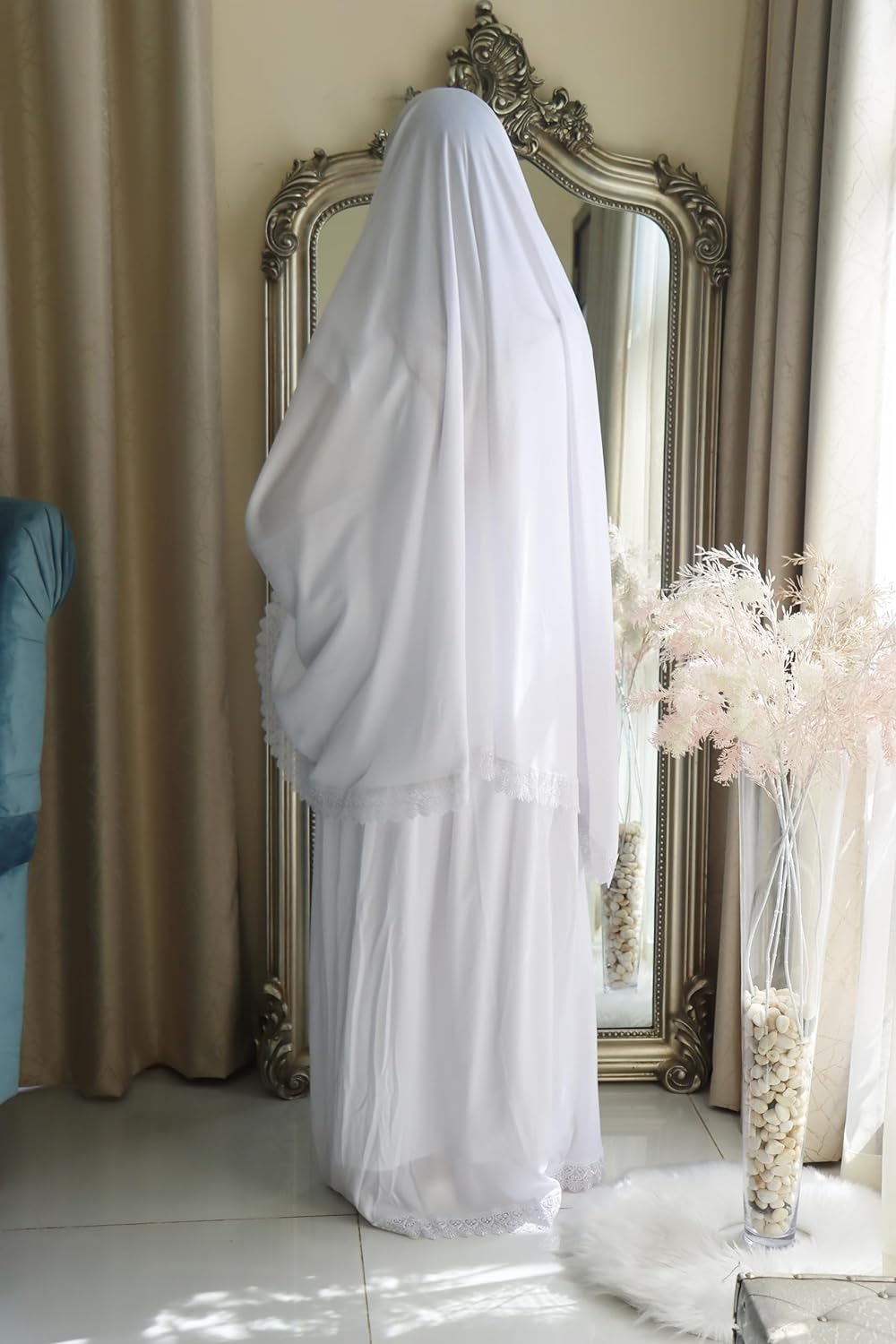 Prayer Dress Women Elegant & Modest Prayer Dress Abaya for Women | Islamic prayer dress | 2 piece Muslim praying outfit hijab | فستان ملابس صلاة للنساء | Turkey design | Full Length Hijab Dress, White